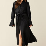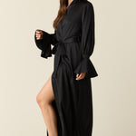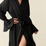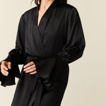 Juliette Luxe Satin Cuff Robe in Black