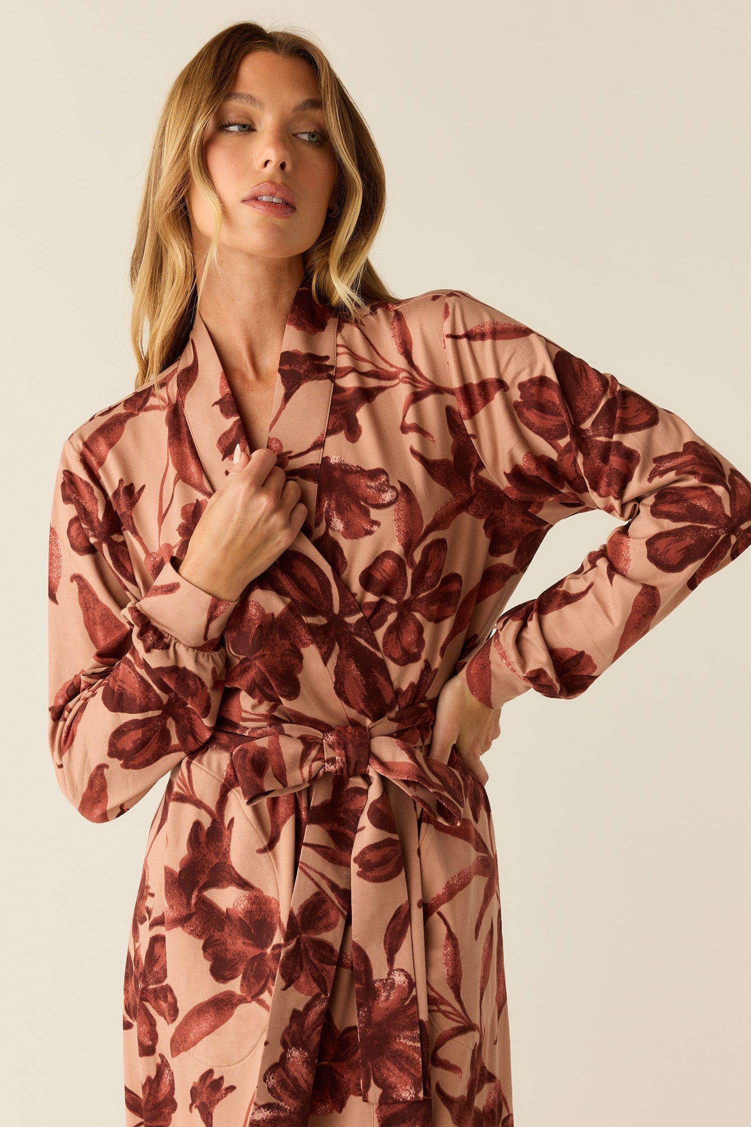 Skyler Cloud Jersey Banded Long Robe in Rosewood