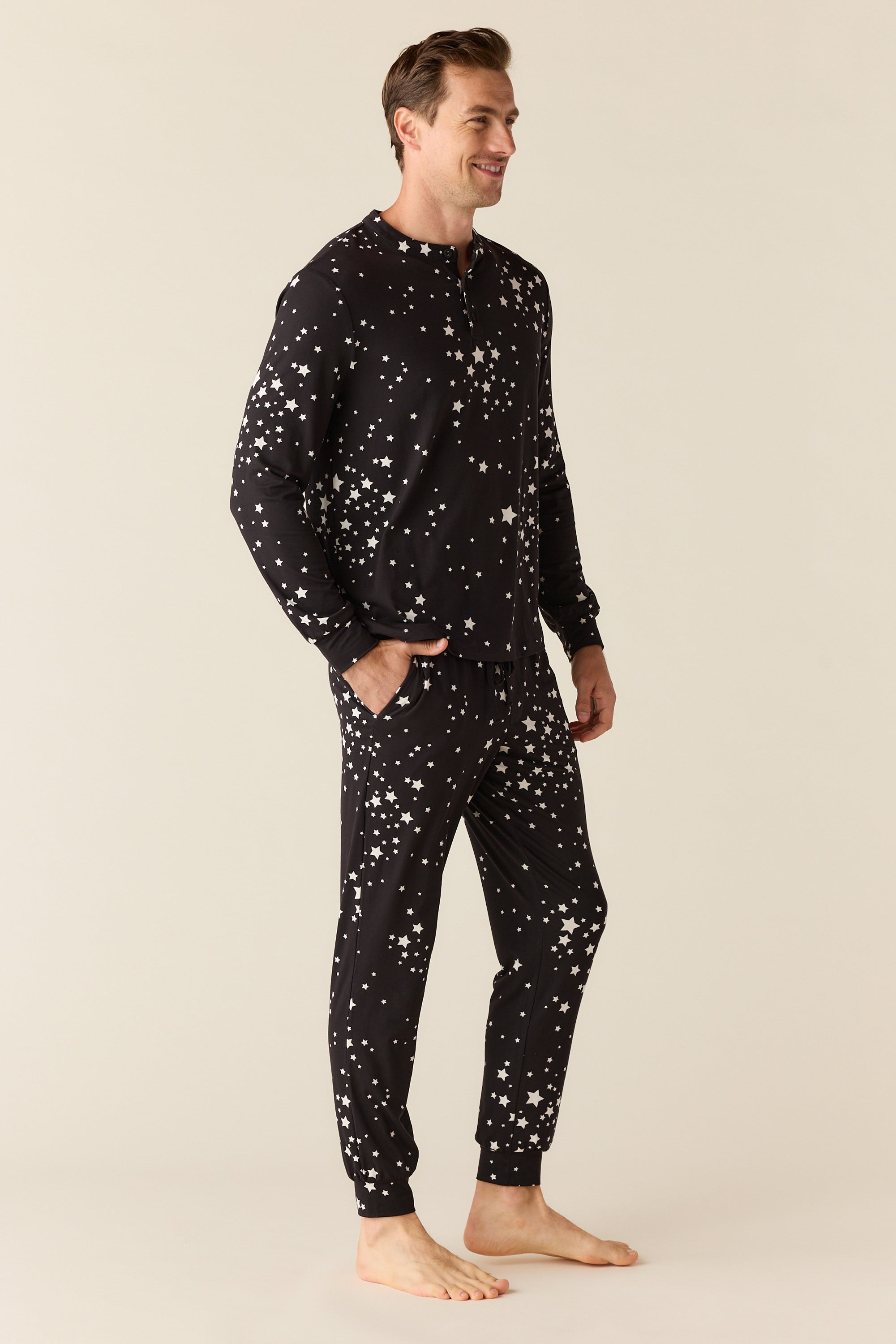 The perfect PJ for him. With a henley style tee and joggers, the Adam is a no fuss, easy to wear sleep set.