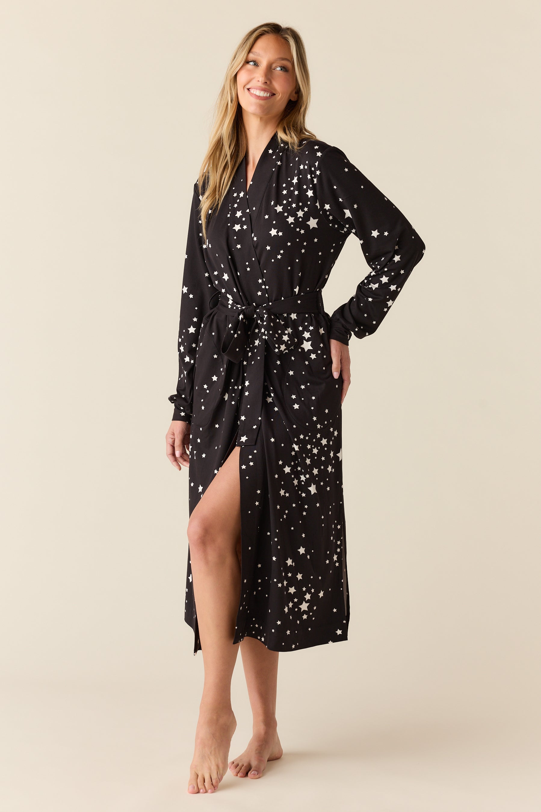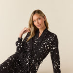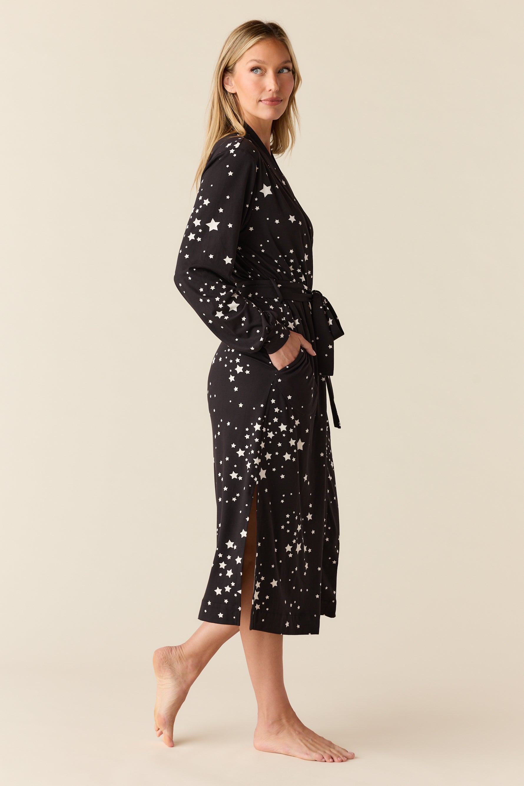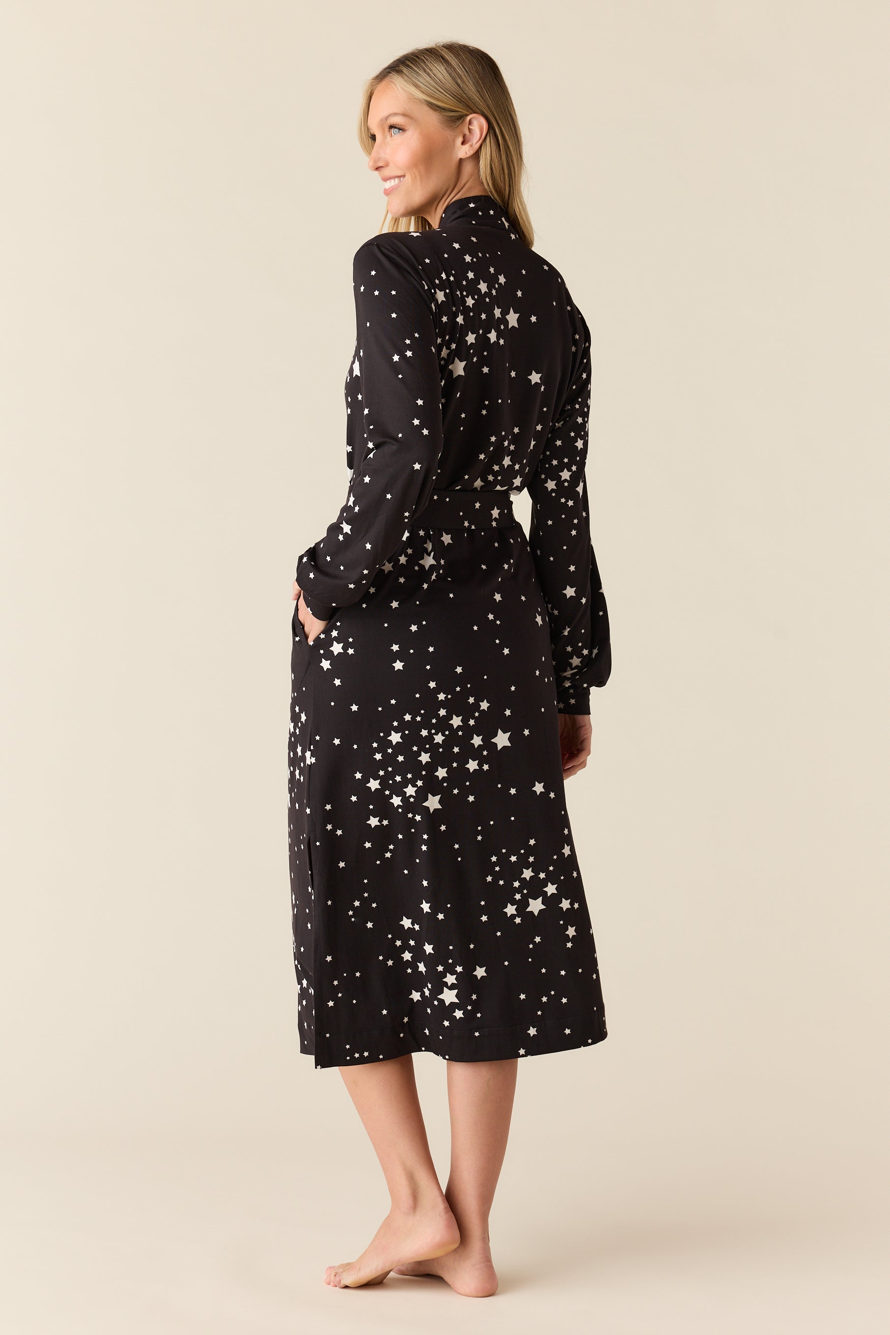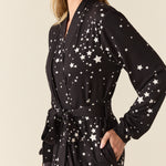 Della Cloud Jersey Banded Midi Robe in Black Stars