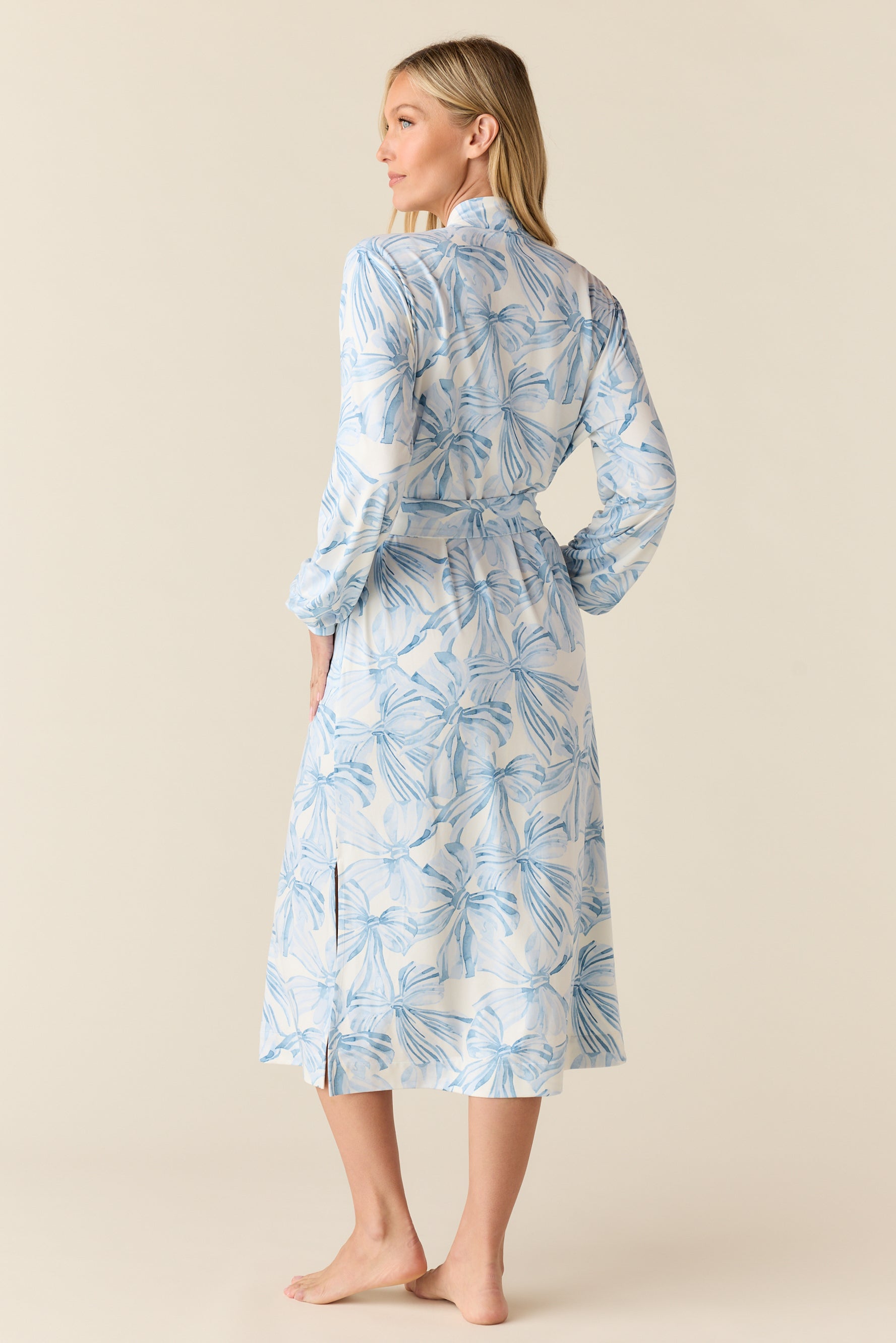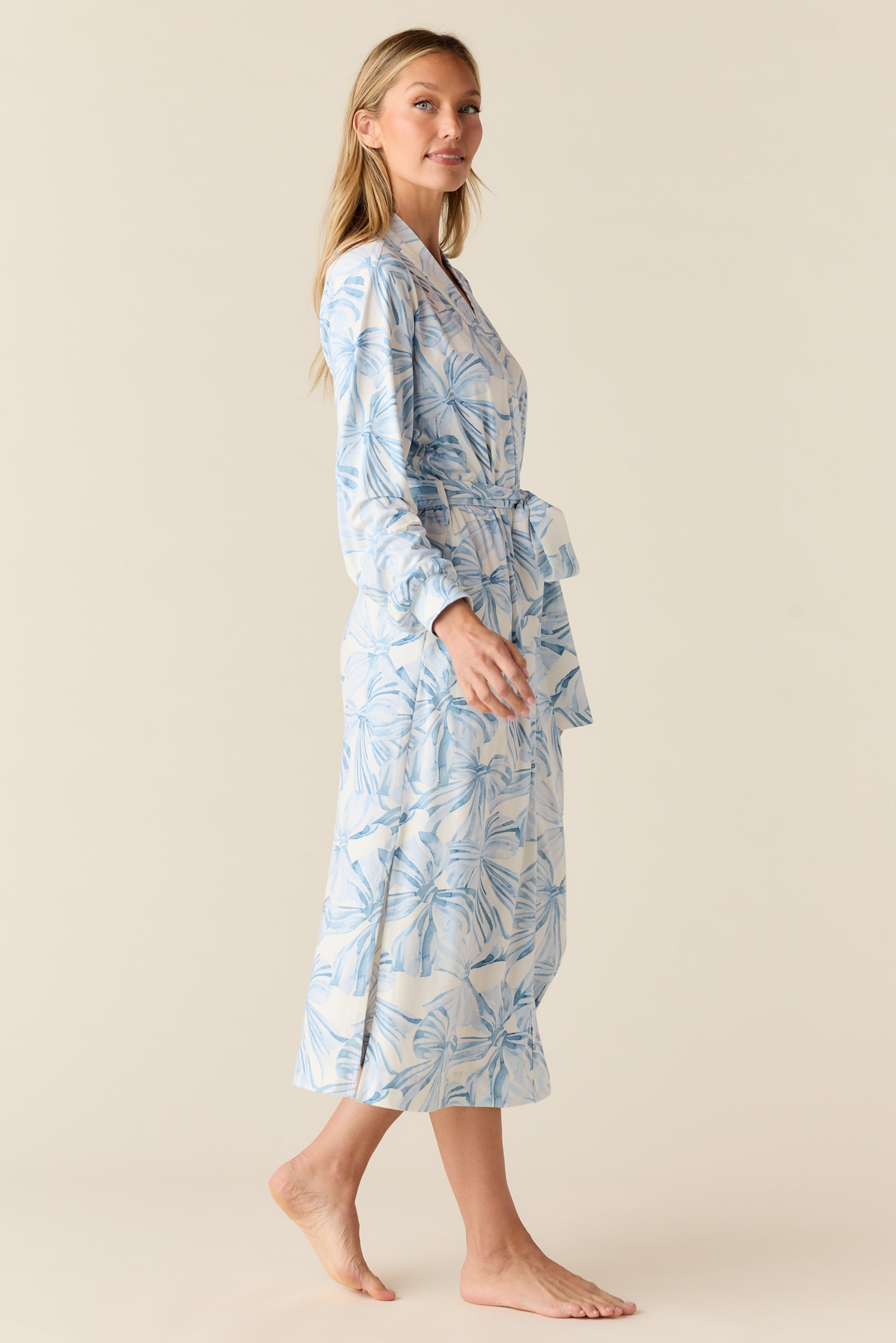 Della Cloud Jersey Banded Midi Robe in Winter Bows