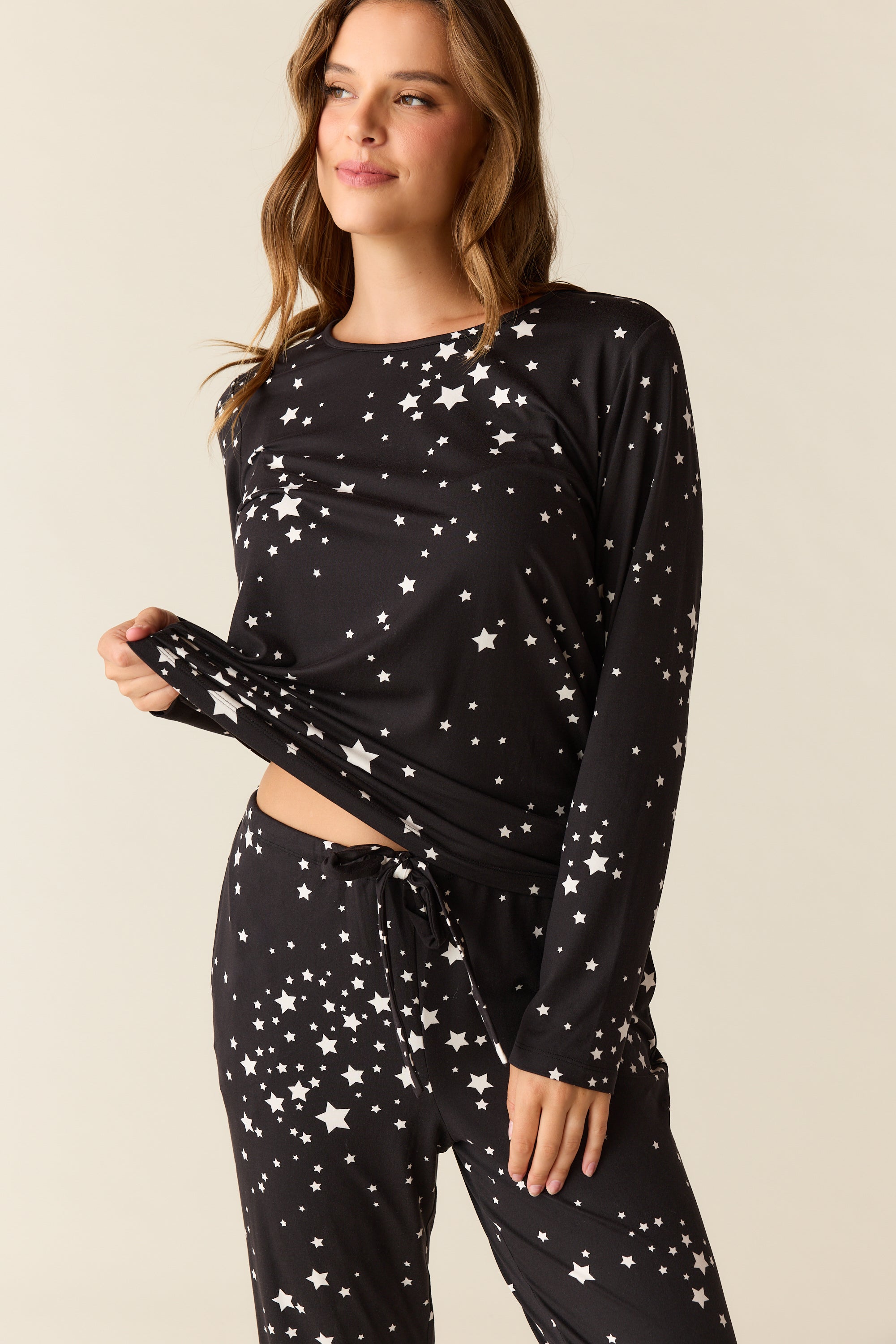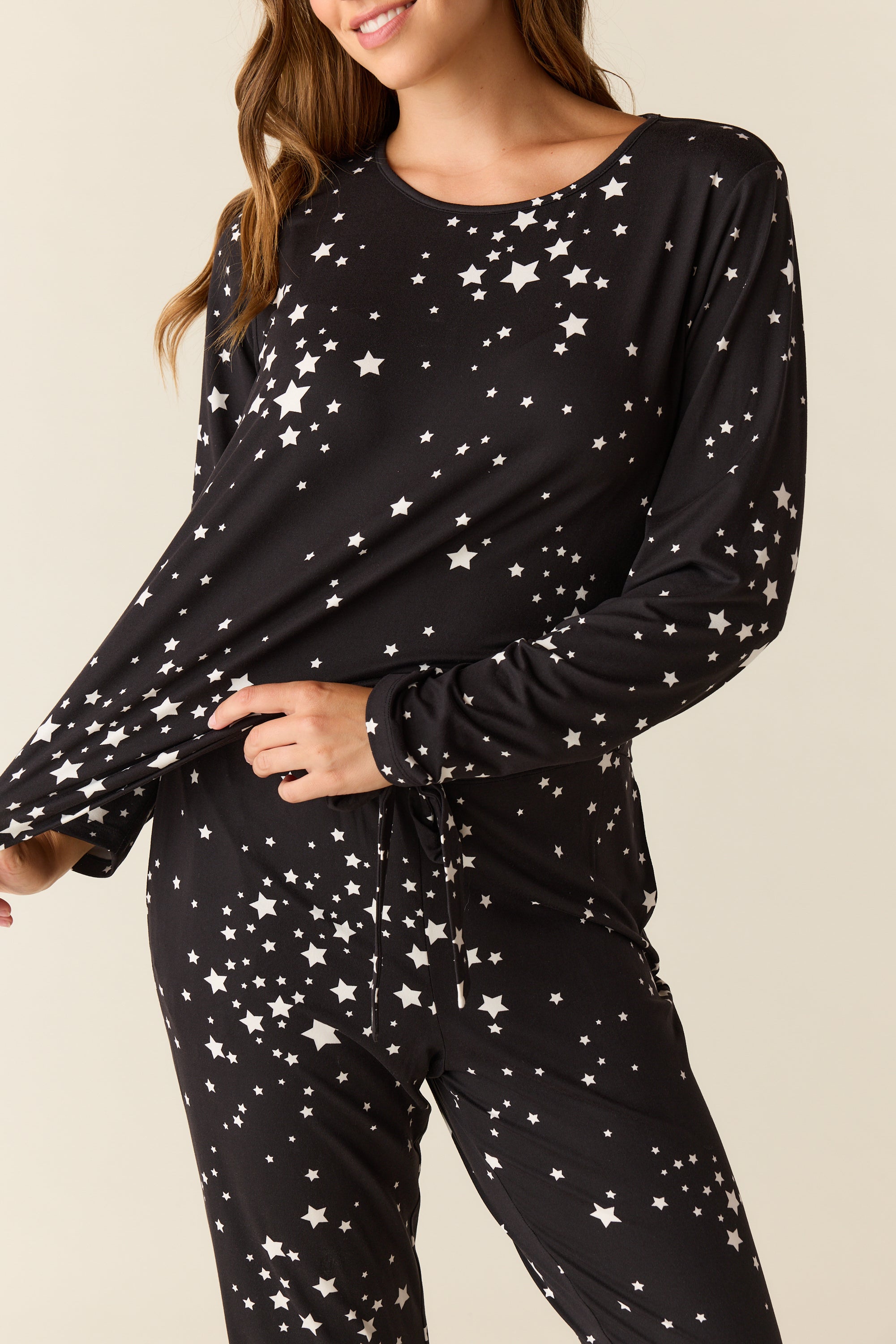 Shari Cloud Jersey PJ Set in Light Blue Stars XL