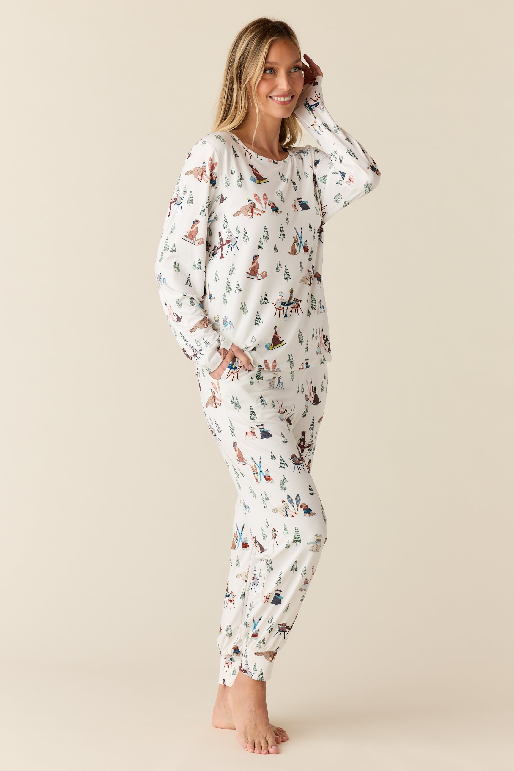Shari Cloud Jersey PJ Set in Winter Break Pups