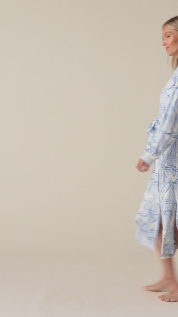 Della Cloud Jersey Banded Midi Robe in Winter Bows