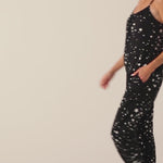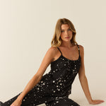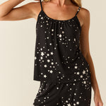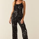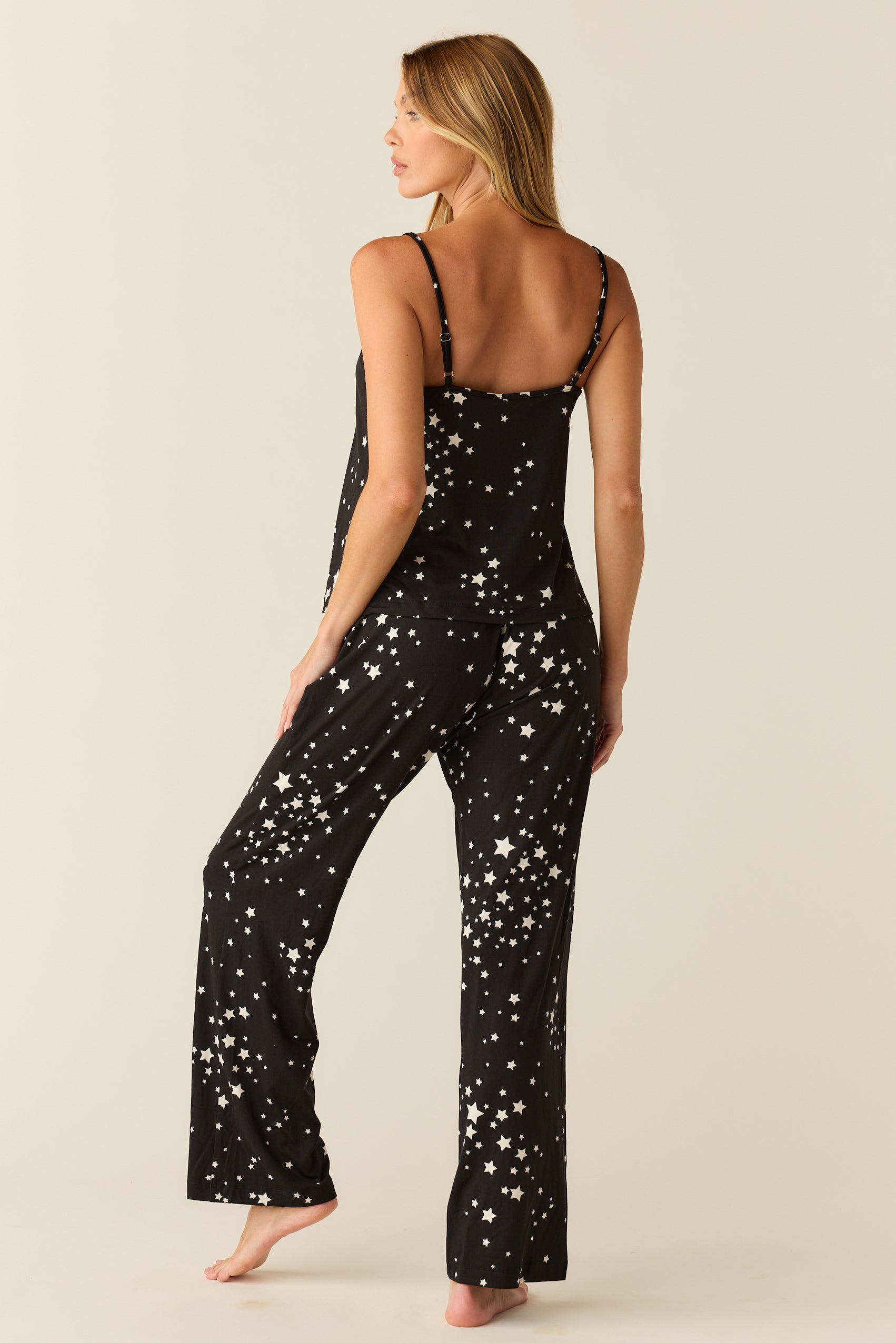 Feminine and airy, the Bella offers simplicity without compromising style. It features a ruched scoop neck cami with a wide leg pant.