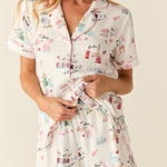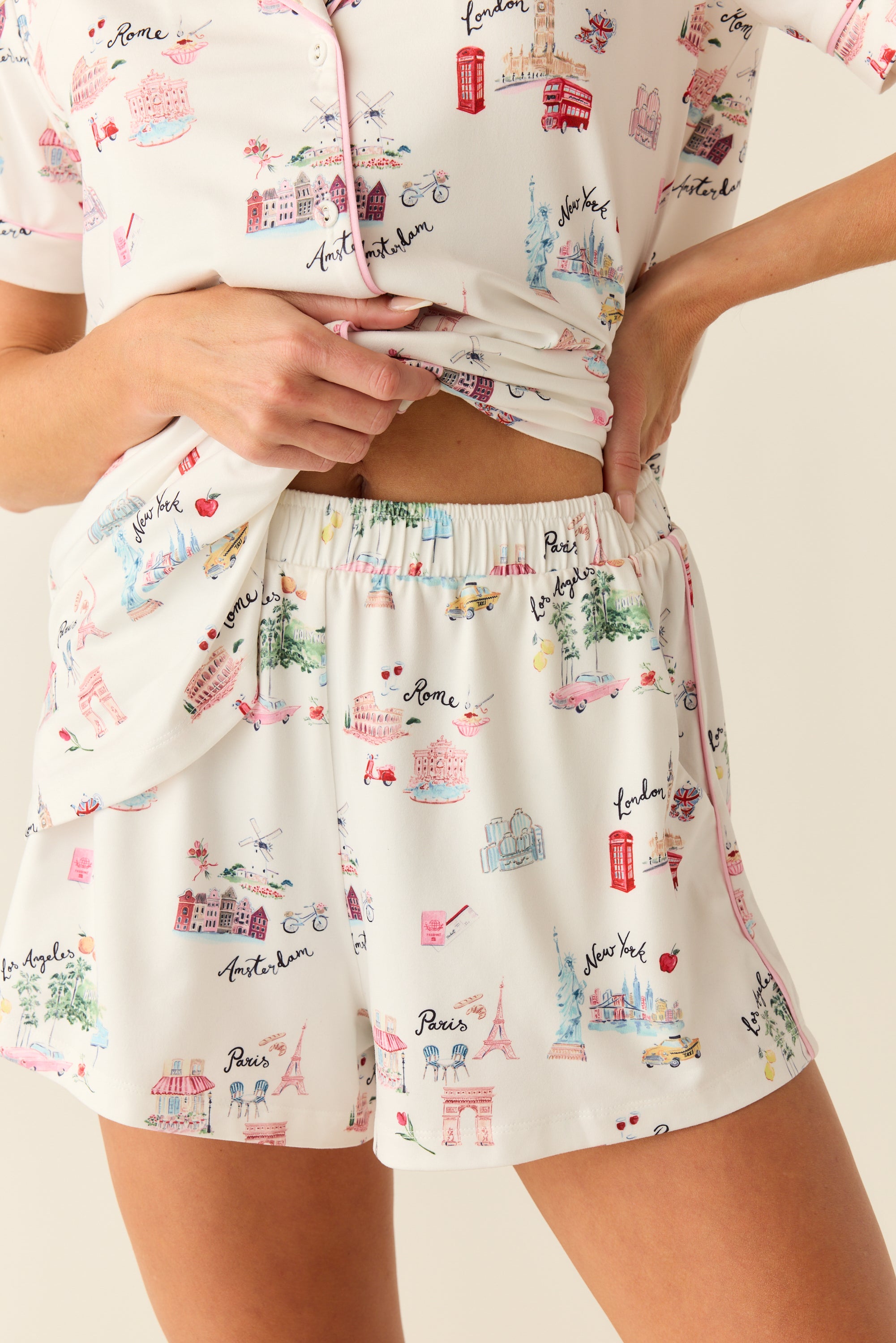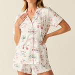 The Maren PJ Set is a traditional-style sleepwear ensemble featuring charming piping detail along the collar and sleeves. Paired with loose fit shorts with pockets, it offers a comfortable and stylish option for a good night's sleep.