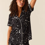 The Maren PJ Set is a traditional-style sleepwear ensemble featuring charming piping detail along the collar and sleeves. Paired with loose fit shorts with pockets, it offers a comfortable and stylish option for a good night's sleep.