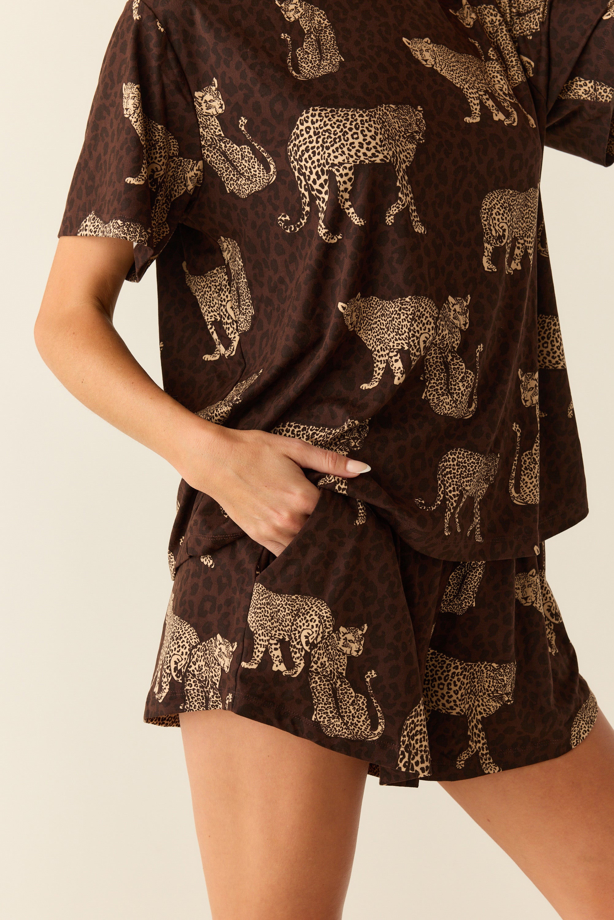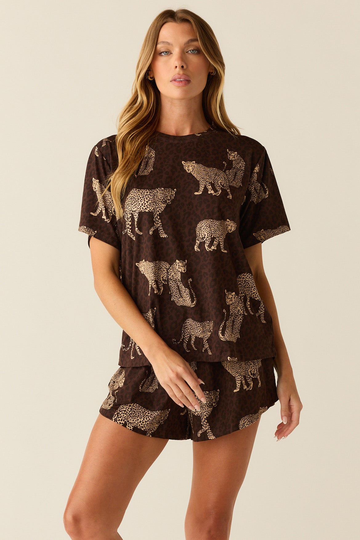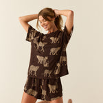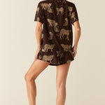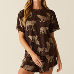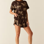 The Taylor PJ Set offers a comfortable and relaxed sleepwear option with its oversized tee and fluttery fit short. Perfect for lounging around or sleeping in.