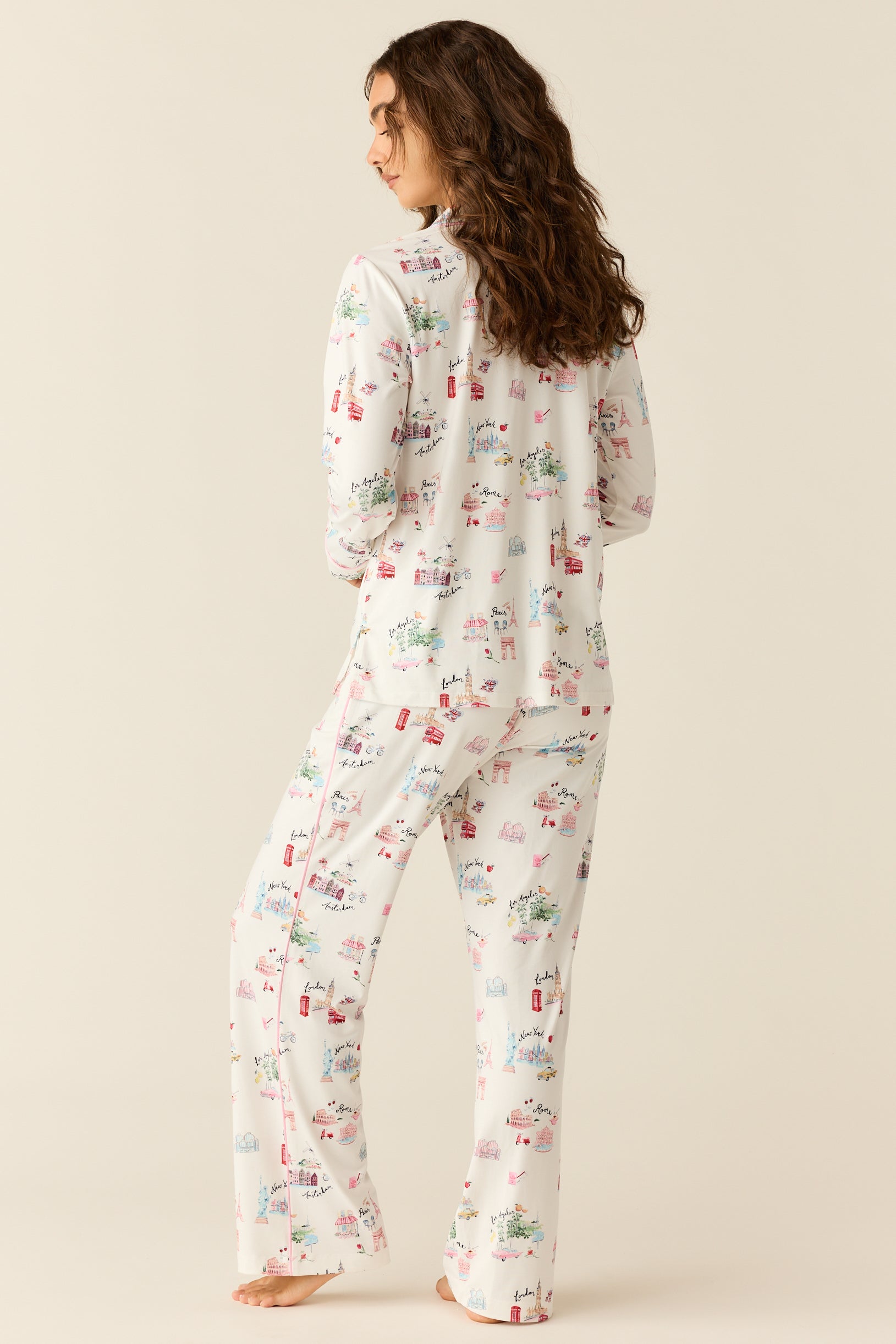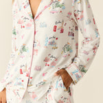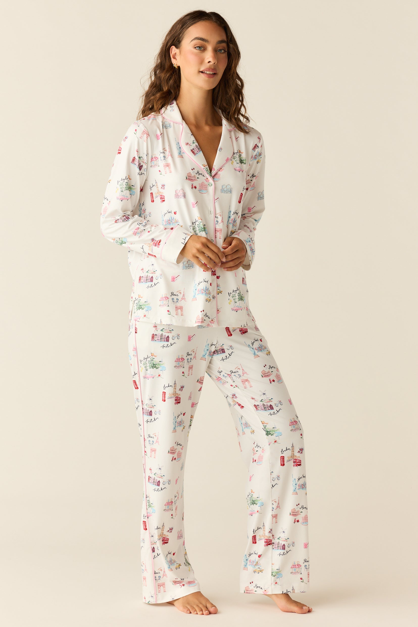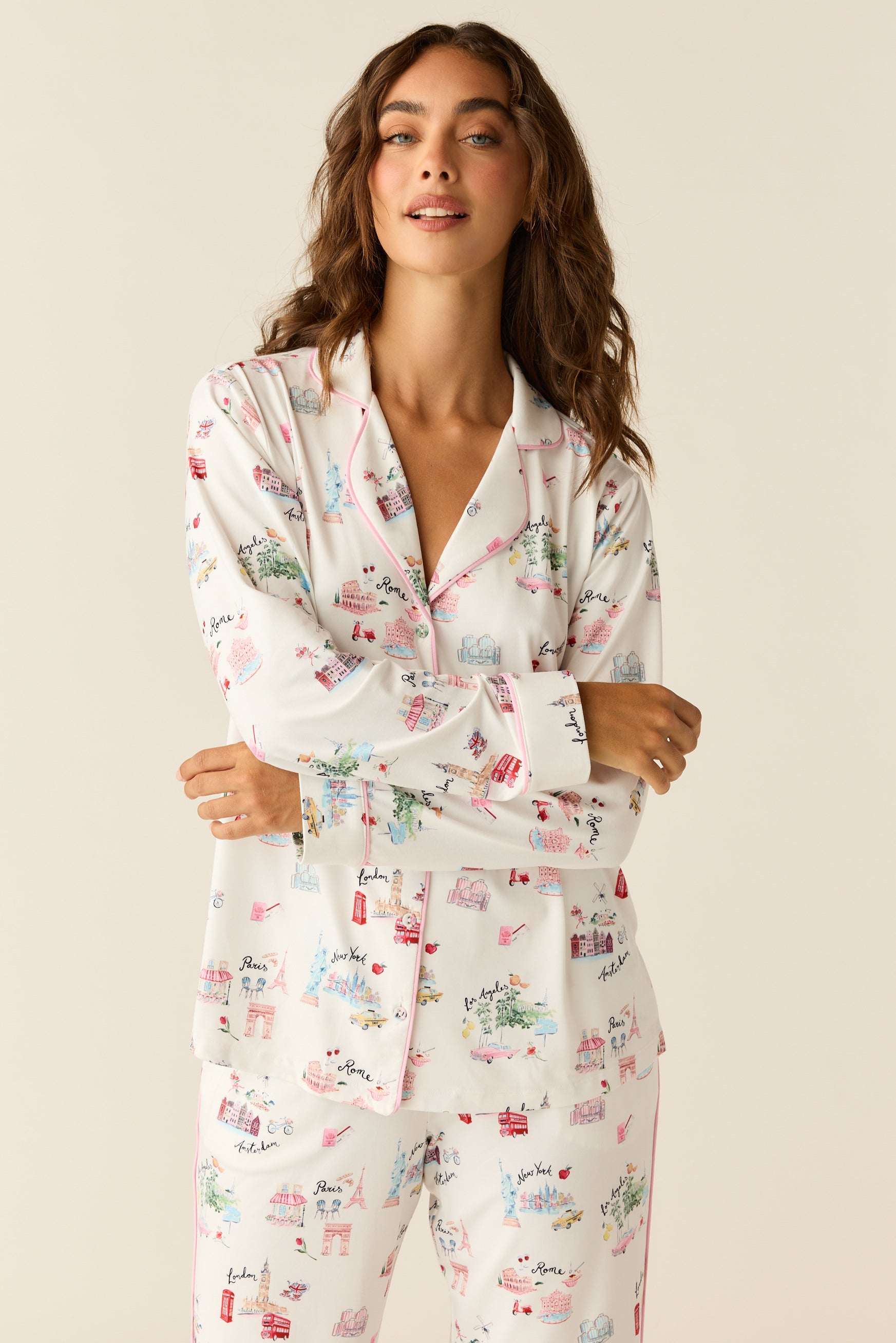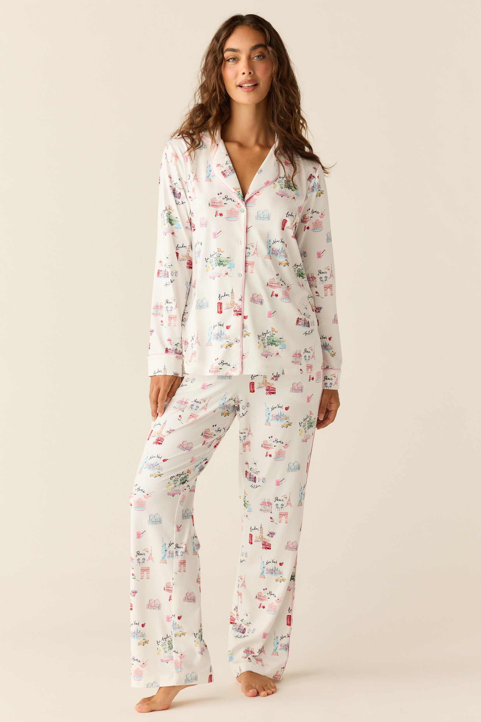 With a top that hits right below the hip and a flattering straight leg pant with pockets, it's our most sophisticated pajama yet. We've added covered buttons and contrast piping for that extra special touch.