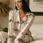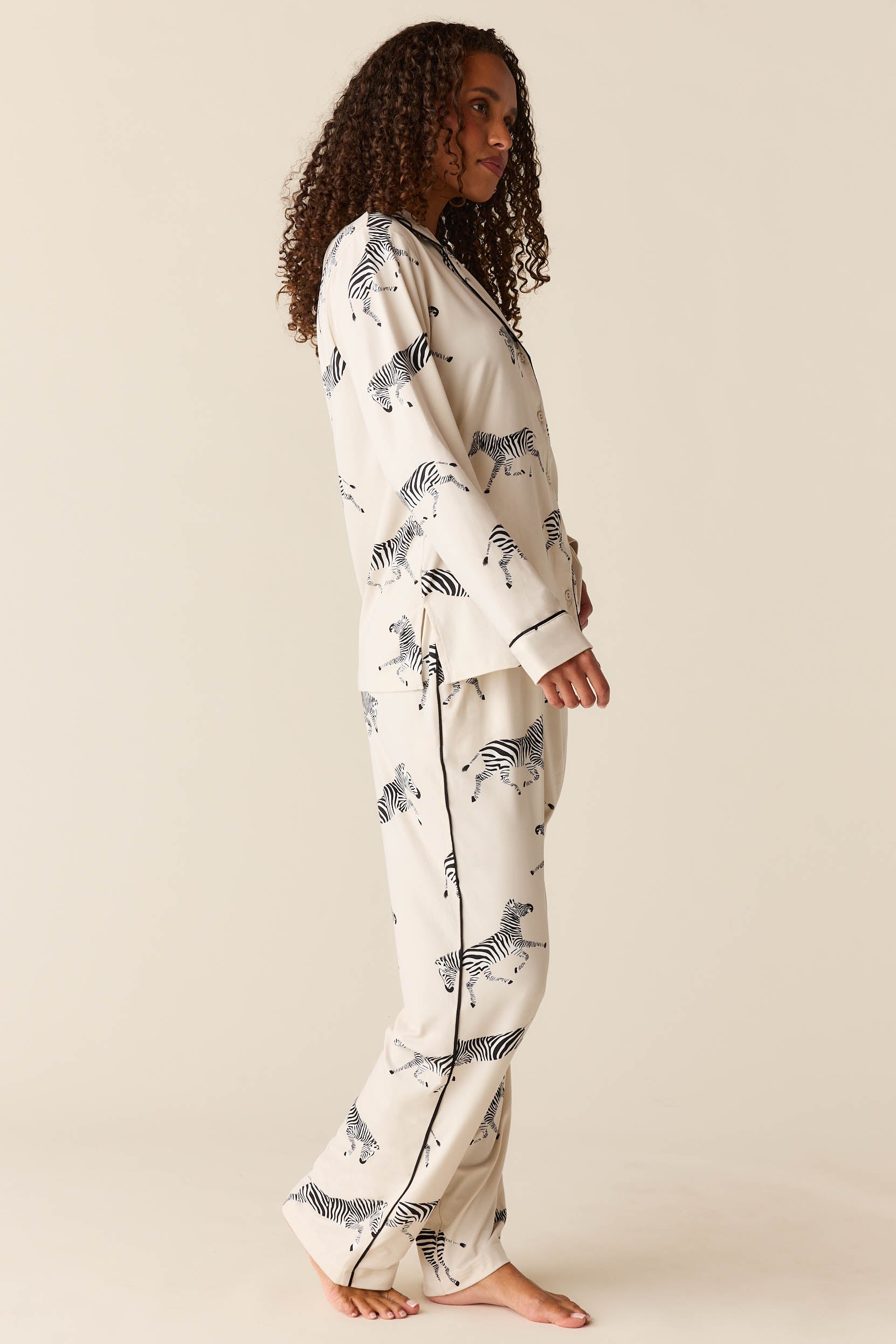 With a top that hits right below the hip and a flattering straight leg pant with pockets, it's our most sophisticated pajama yet. We've added covered buttons and contrast piping for that extra special touch.