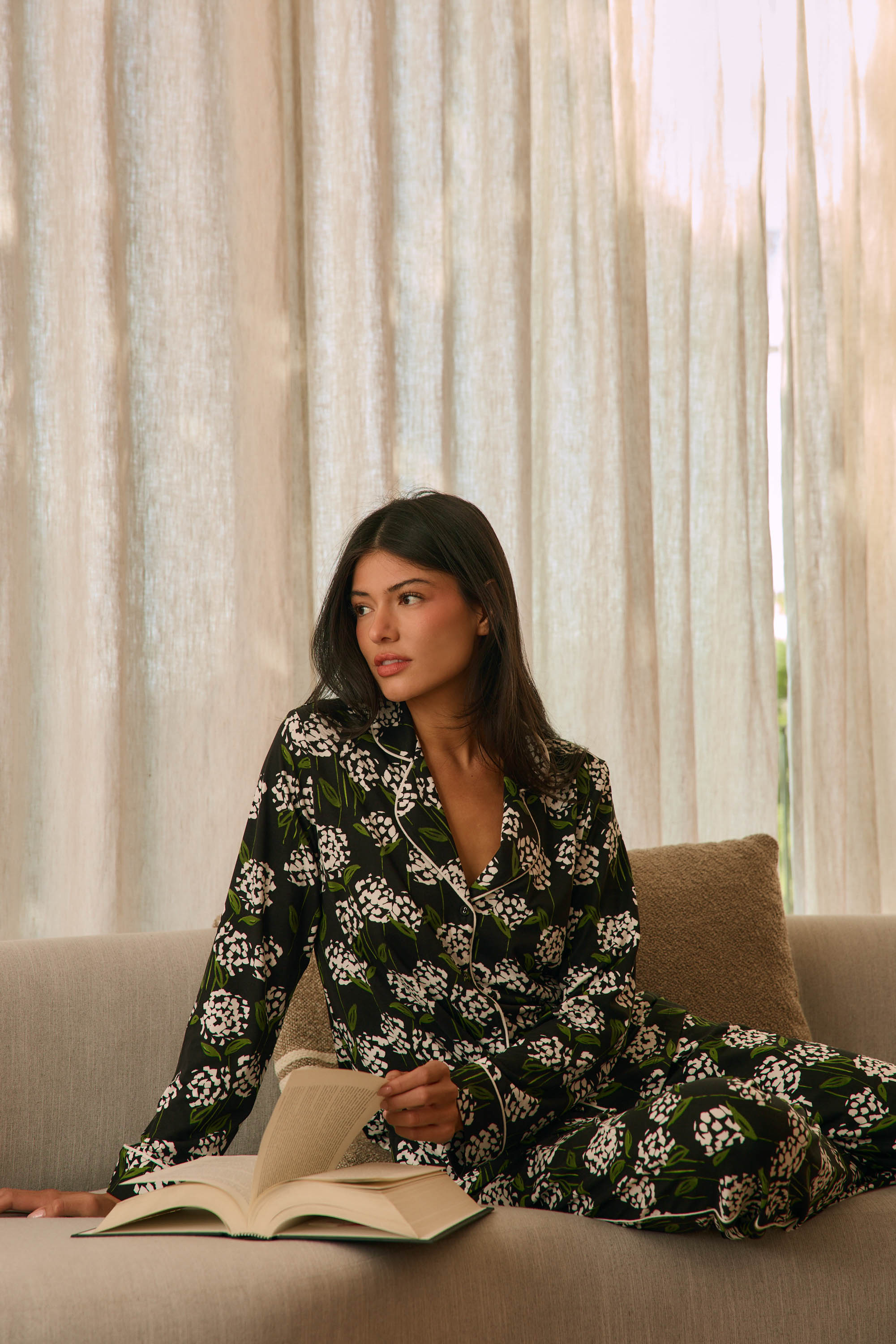 With a top that hits right below the hip and a flattering straight leg pant with pockets, it's our most sophisticated pajama yet. We've added covered buttons and contrast piping for that extra special touch.
