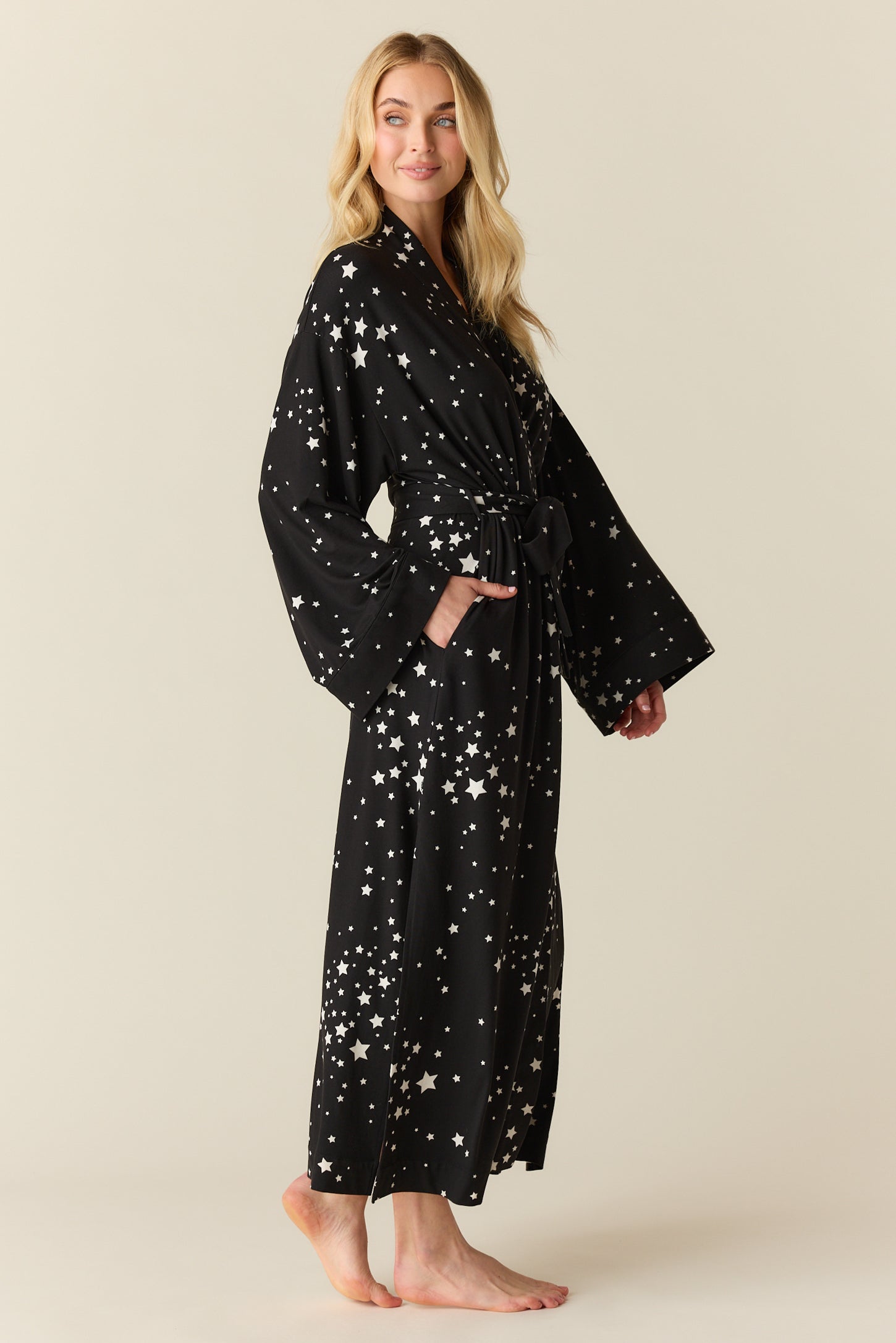 Kaia Cloud Jersey Kimono Robe in Black Stars