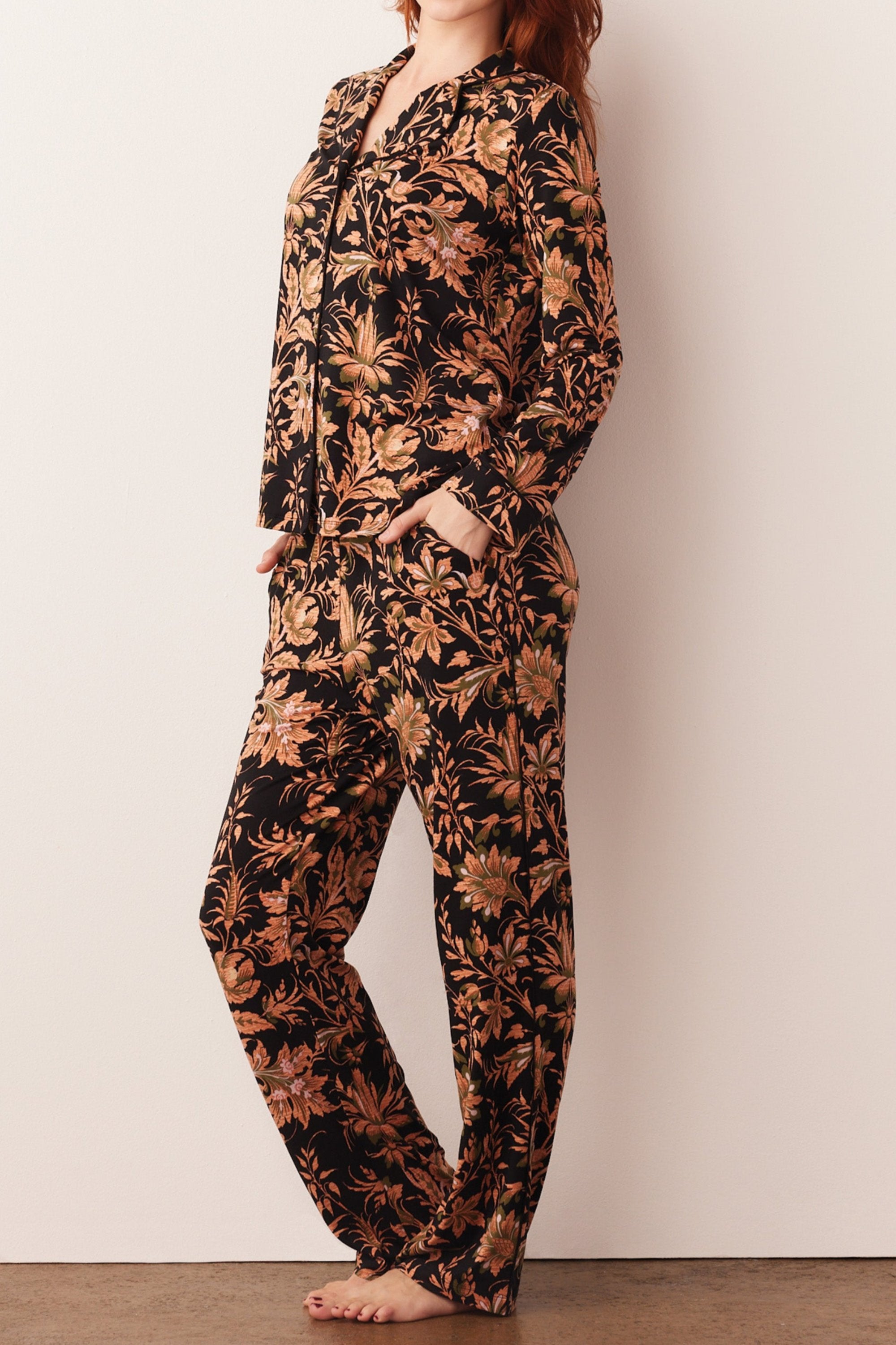With a top that hits right below the hip and a flattering straight leg pant with pockets, it's our most sophisticated pajama yet. We've added covered buttons and contrast piping for that extra special touch.