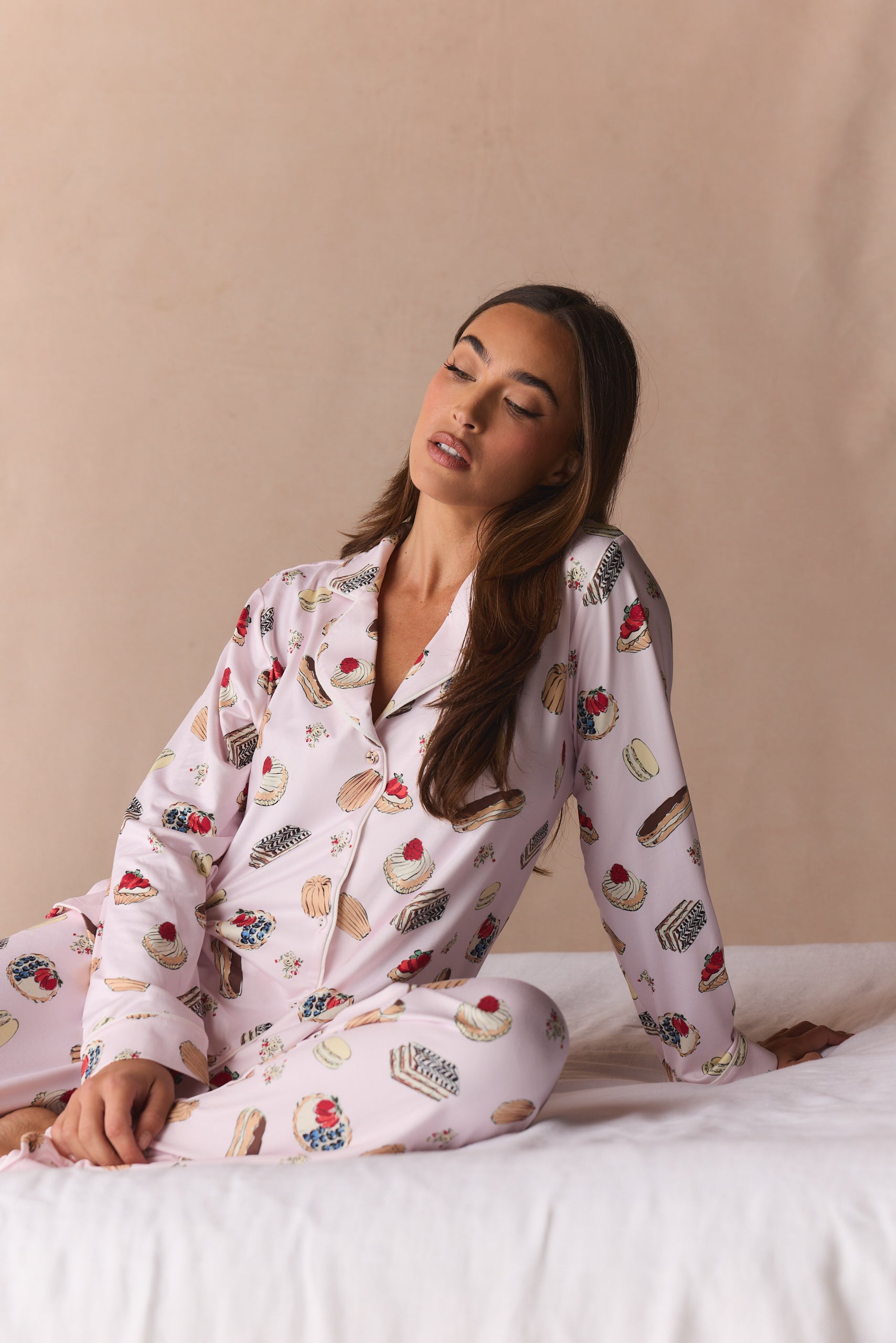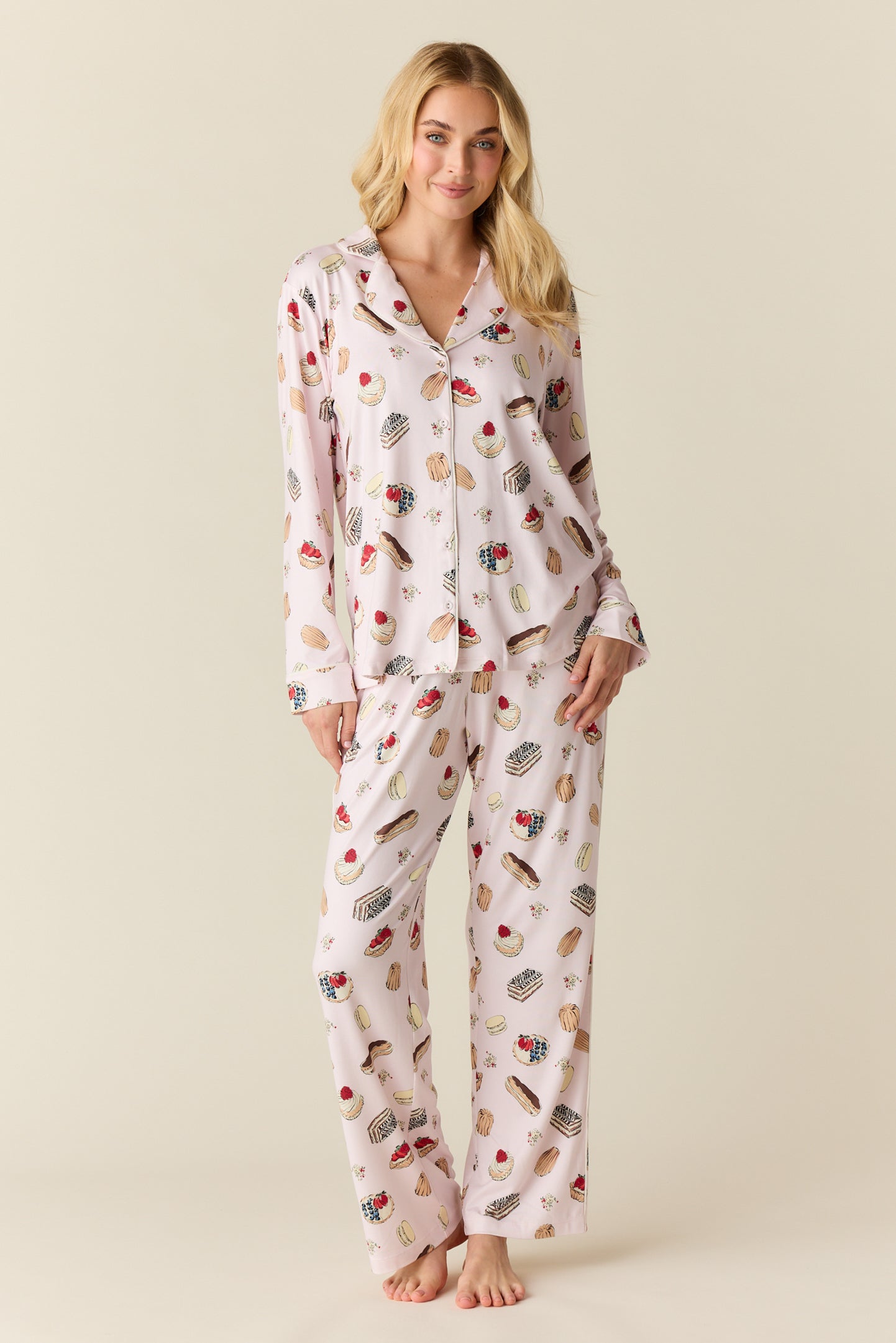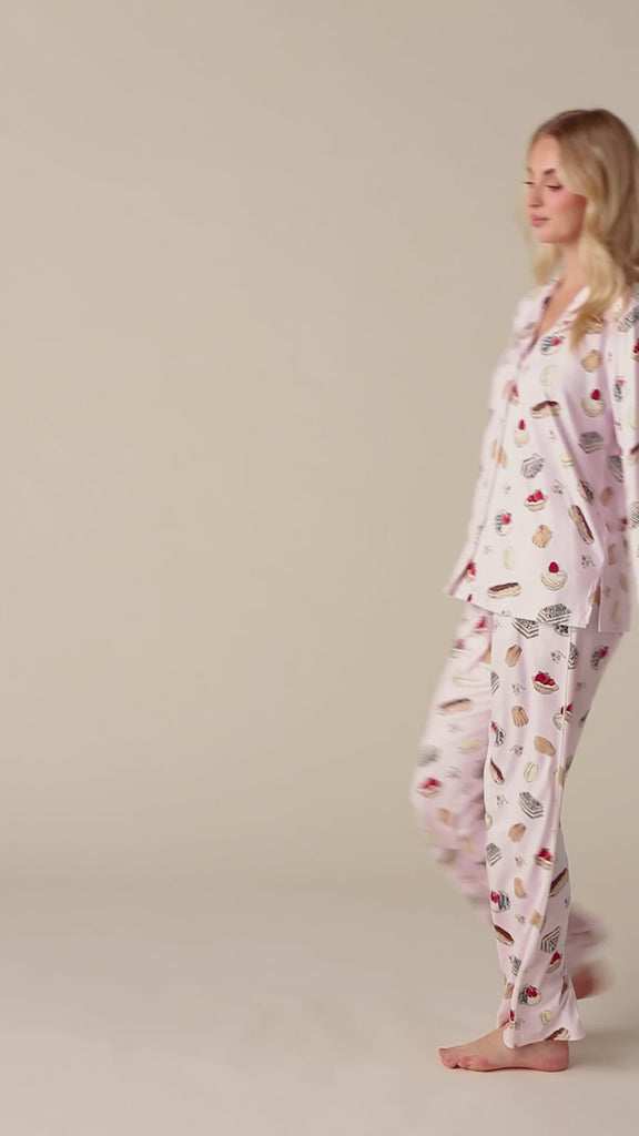 With a top that hits right below the hip and a flattering straight leg pant with pockets, it's our most sophisticated pajama yet. We've added covered buttons and contrast piping for that extra special touch.