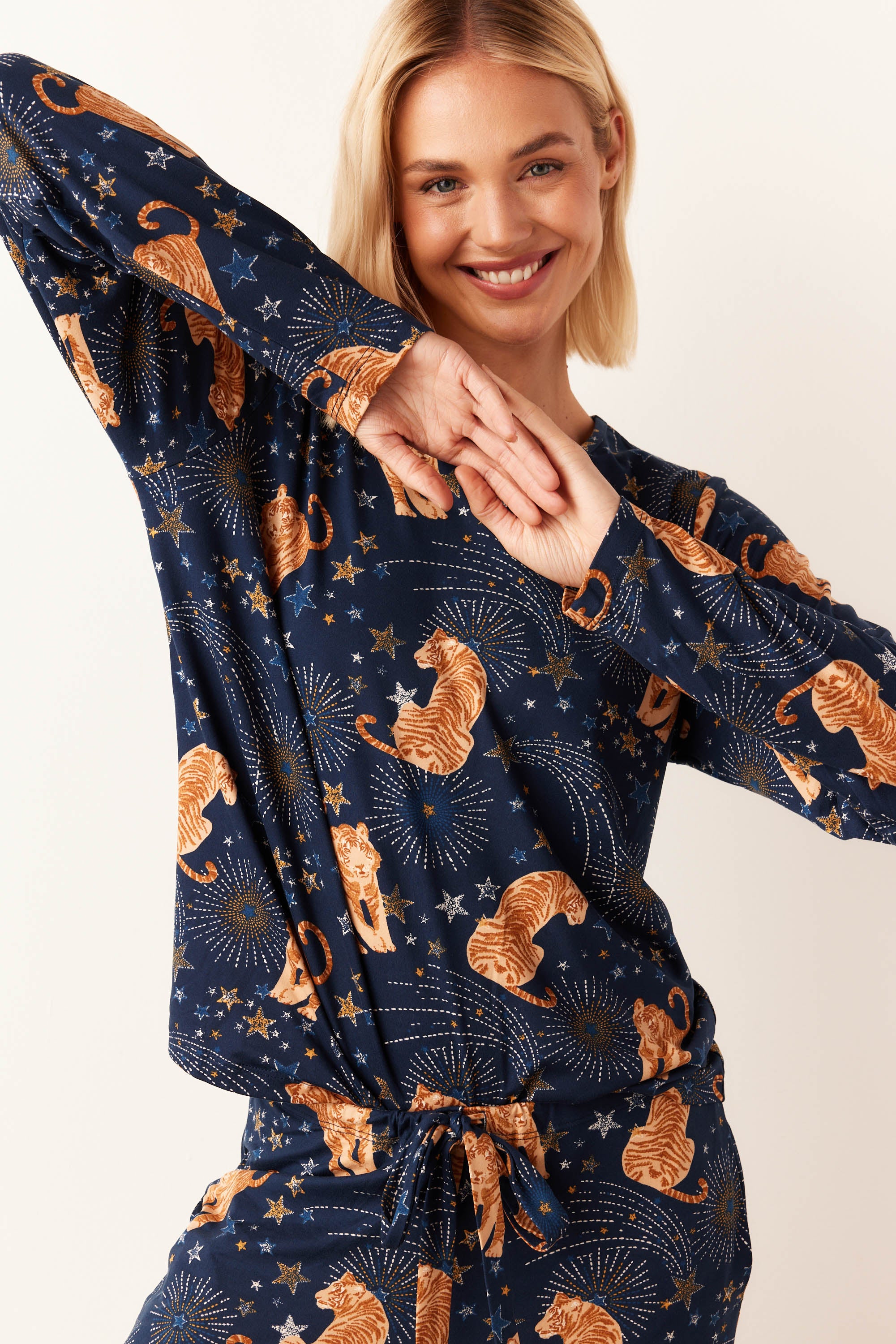 Tigers sat amongst a burst of stars for a fun and bold print.