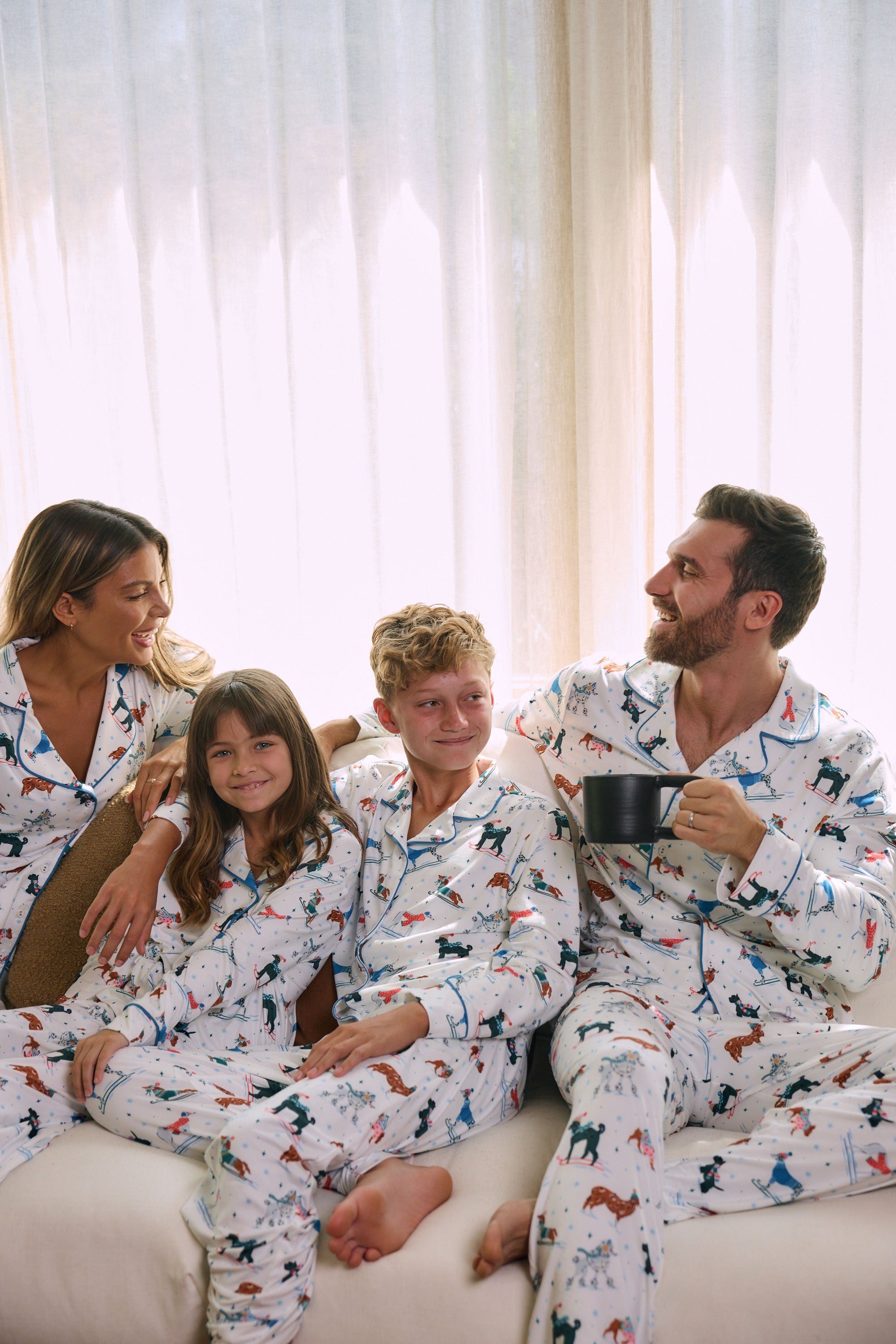 A fun winter inspired print, featuring pups in their snowy gear and skis.