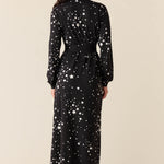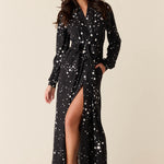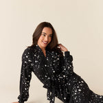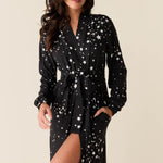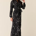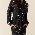 Skyler Cloud Jersey Banded Long Robe in Black Stars