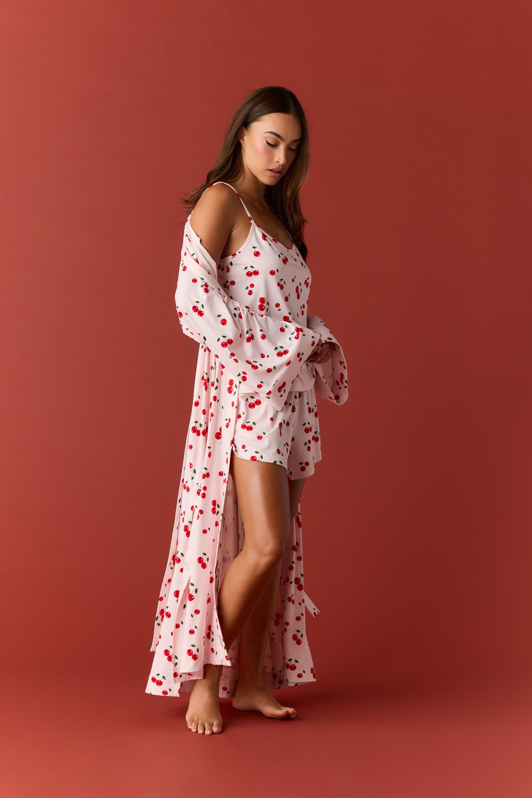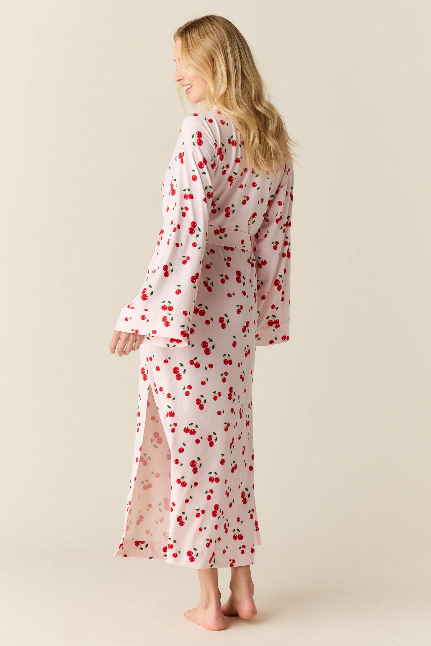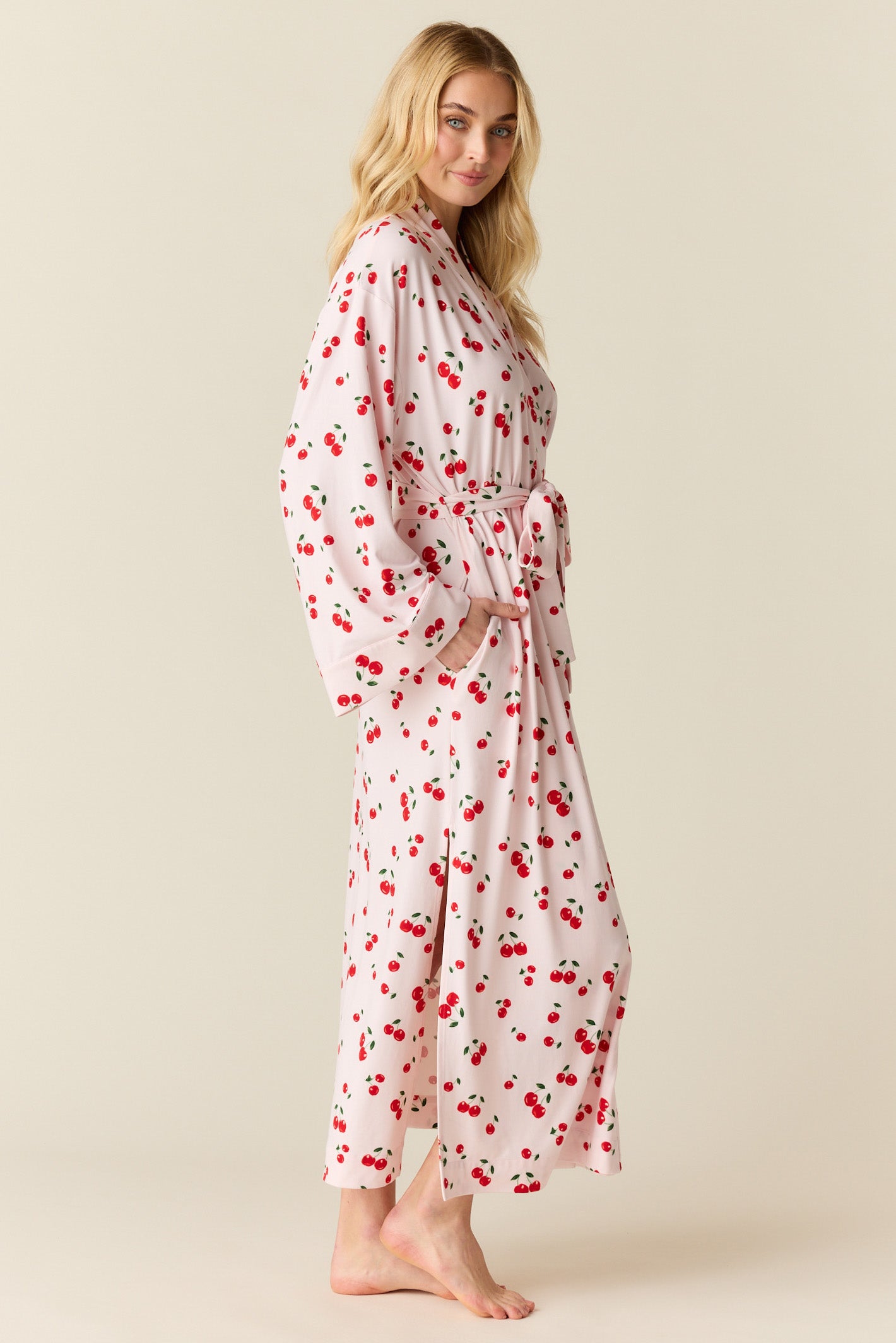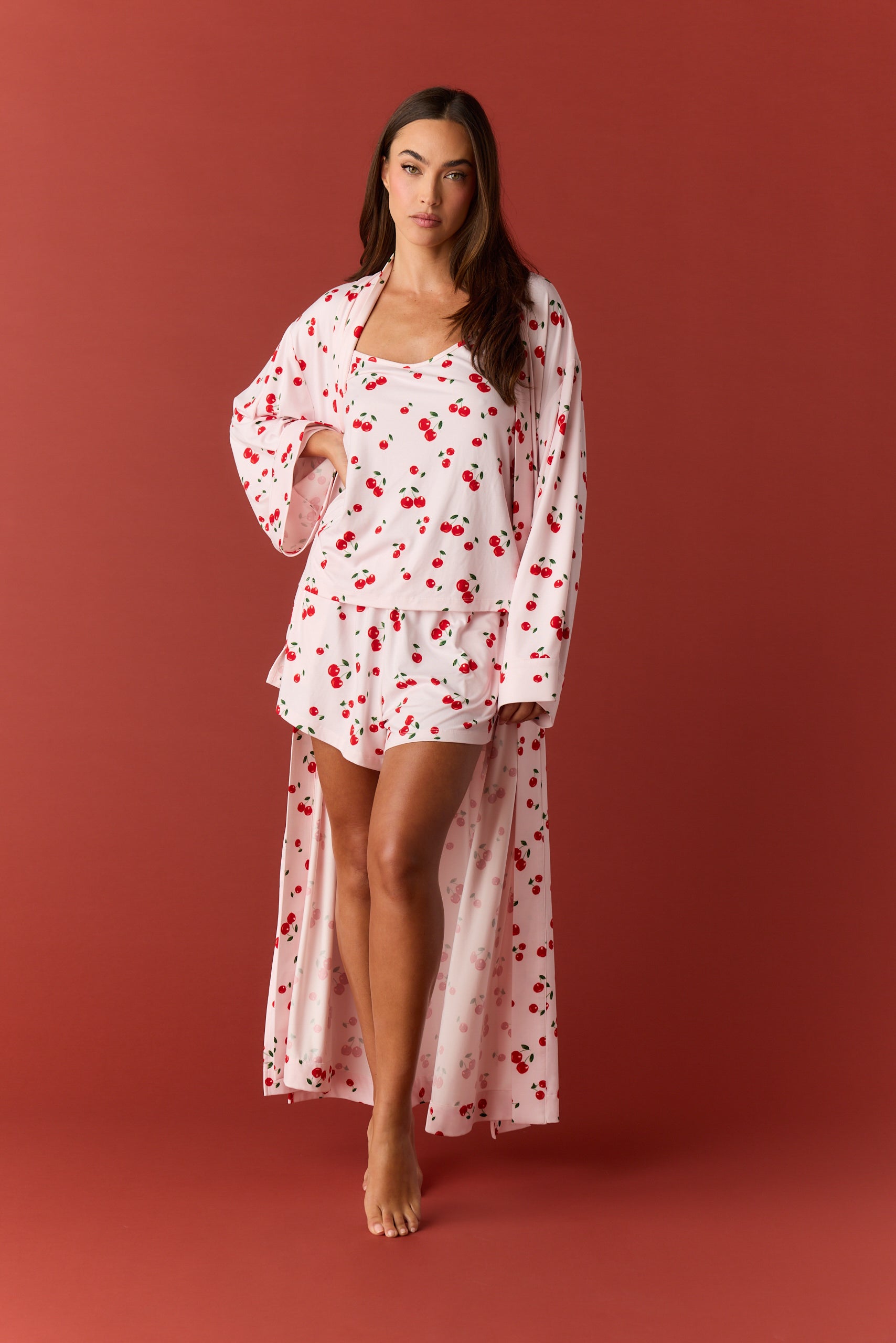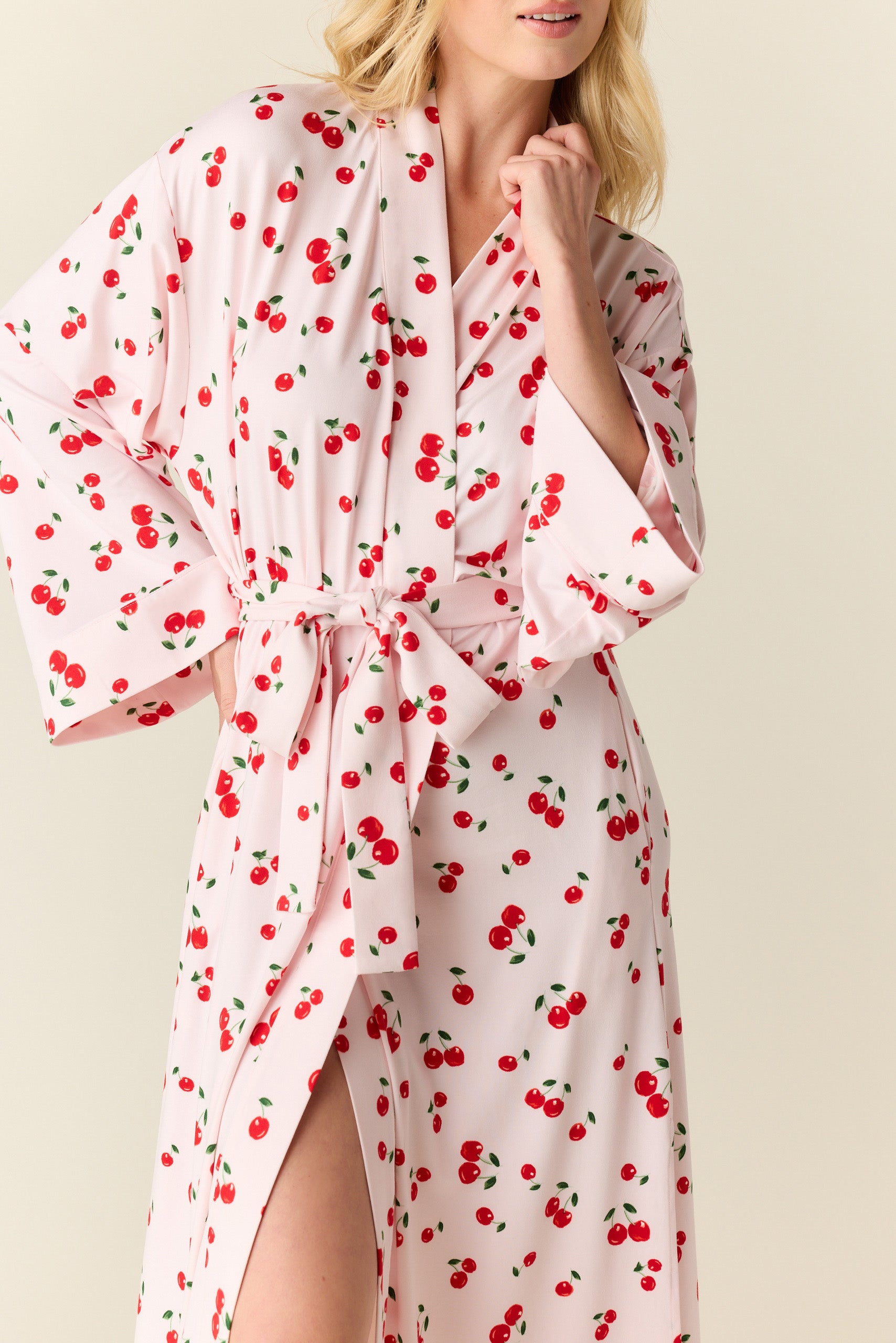 Kaia Cloud Jersey Kimono Robe in Very Cherry