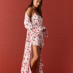 Kaia Cloud Jersey Kimono Robe in Roses Are Red M
