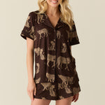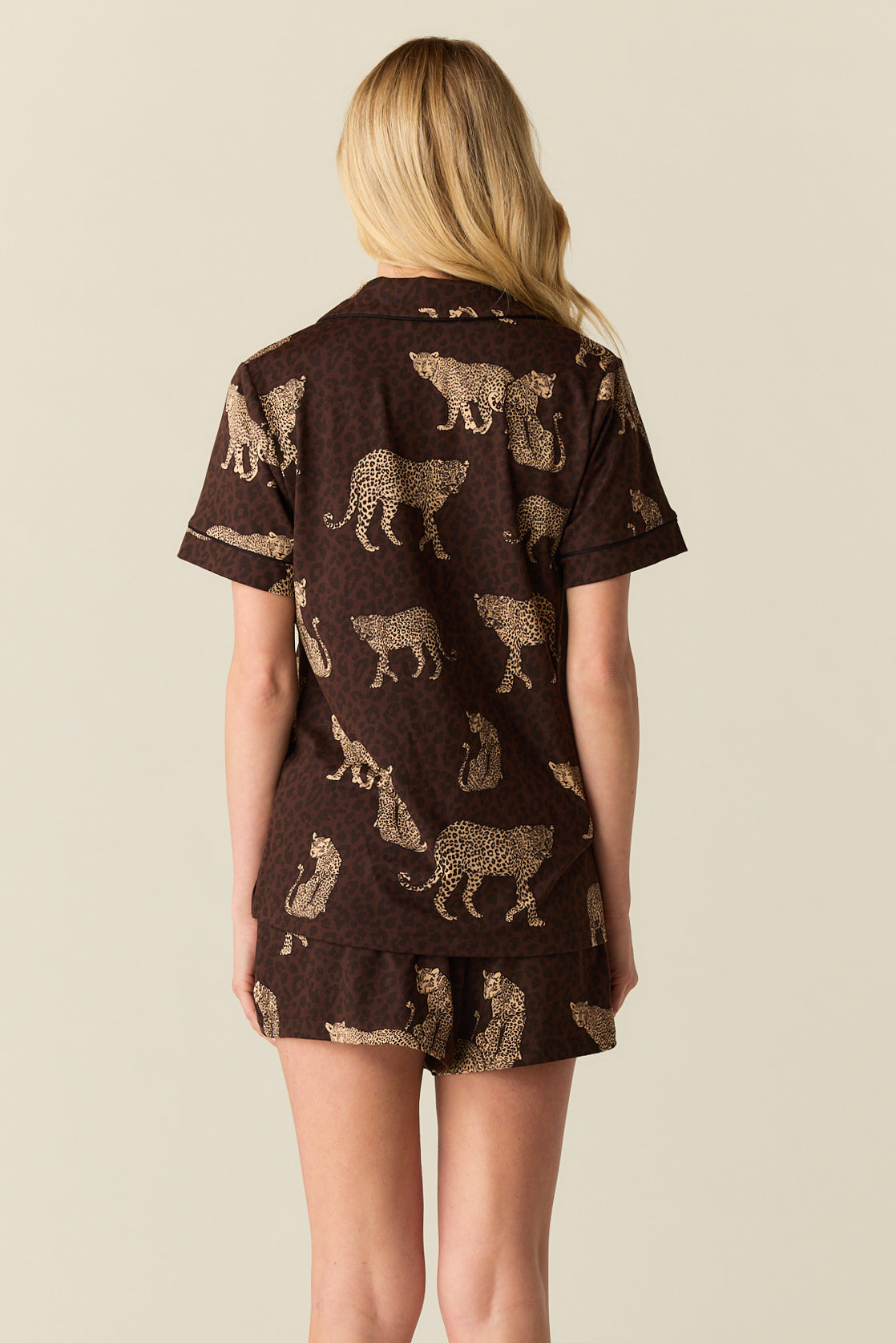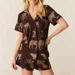 The Maren PJ Set is a traditional-style sleepwear ensemble featuring charming piping detail along the collar and sleeves. Paired with loose fit shorts with pockets, it offers a comfortable and stylish option for a good night's sleep.