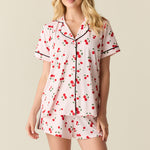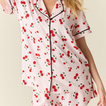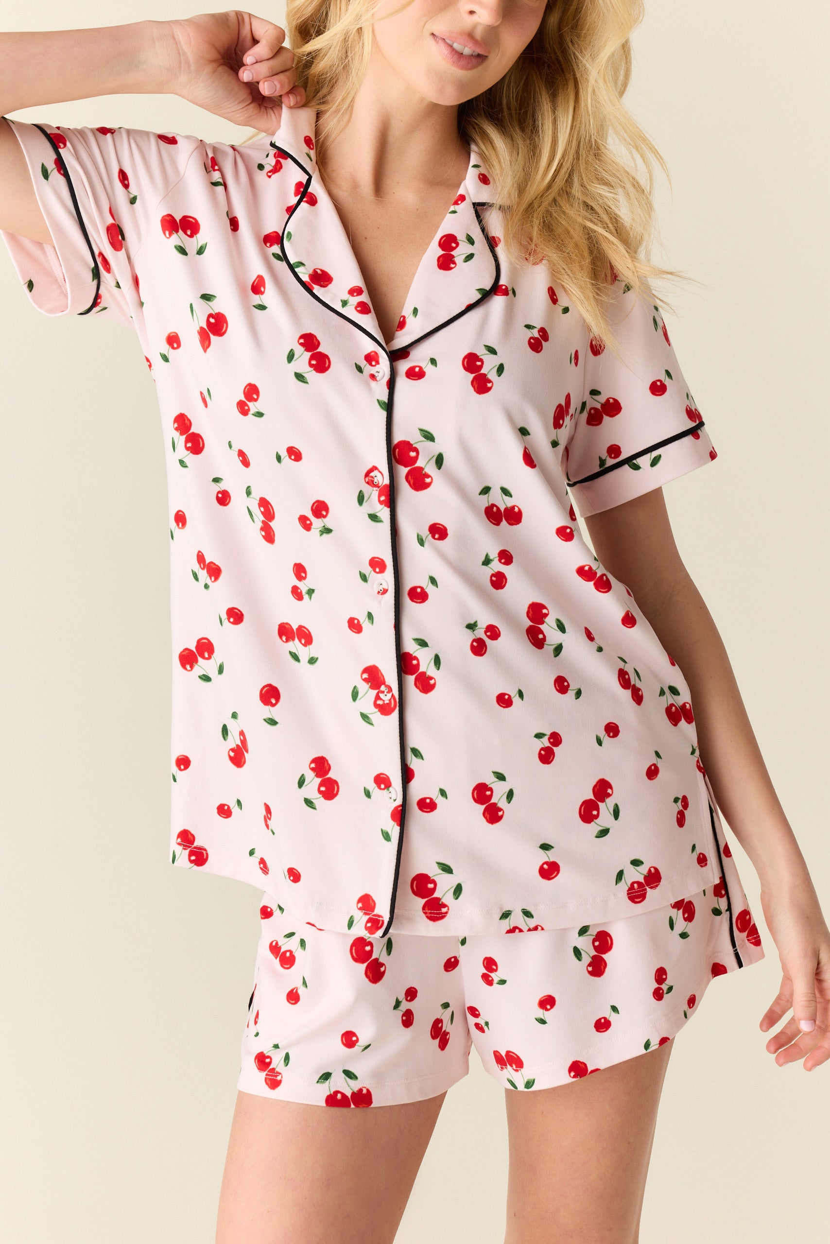 The Maren PJ Set is a traditional-style sleepwear ensemble featuring charming piping detail along the collar and sleeves. Paired with loose fit shorts with pockets, it offers a comfortable and stylish option for a good night's sleep.