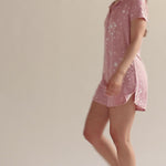 Nikki Summer Jersey Henley Dress in Blush Stars M