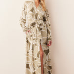 Skyler Cloud Jersey Banded Long Robe in Botanical S