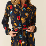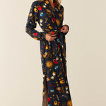 Skyler Cloud Jersey Banded Long Robe in Botanical S