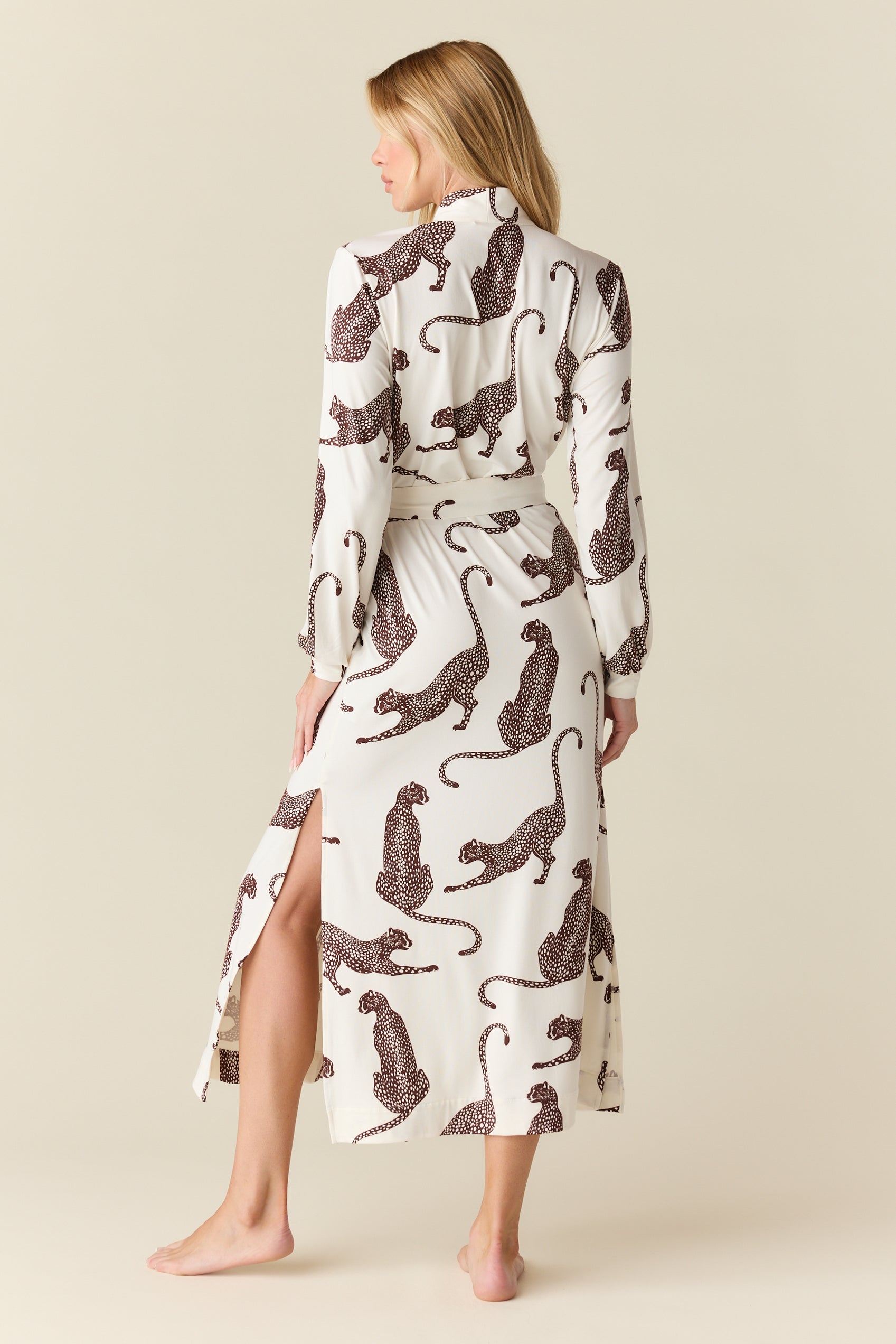 Skyler Cloud Jersey Banded Long Robe in Savanna S