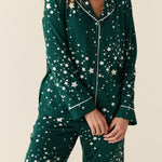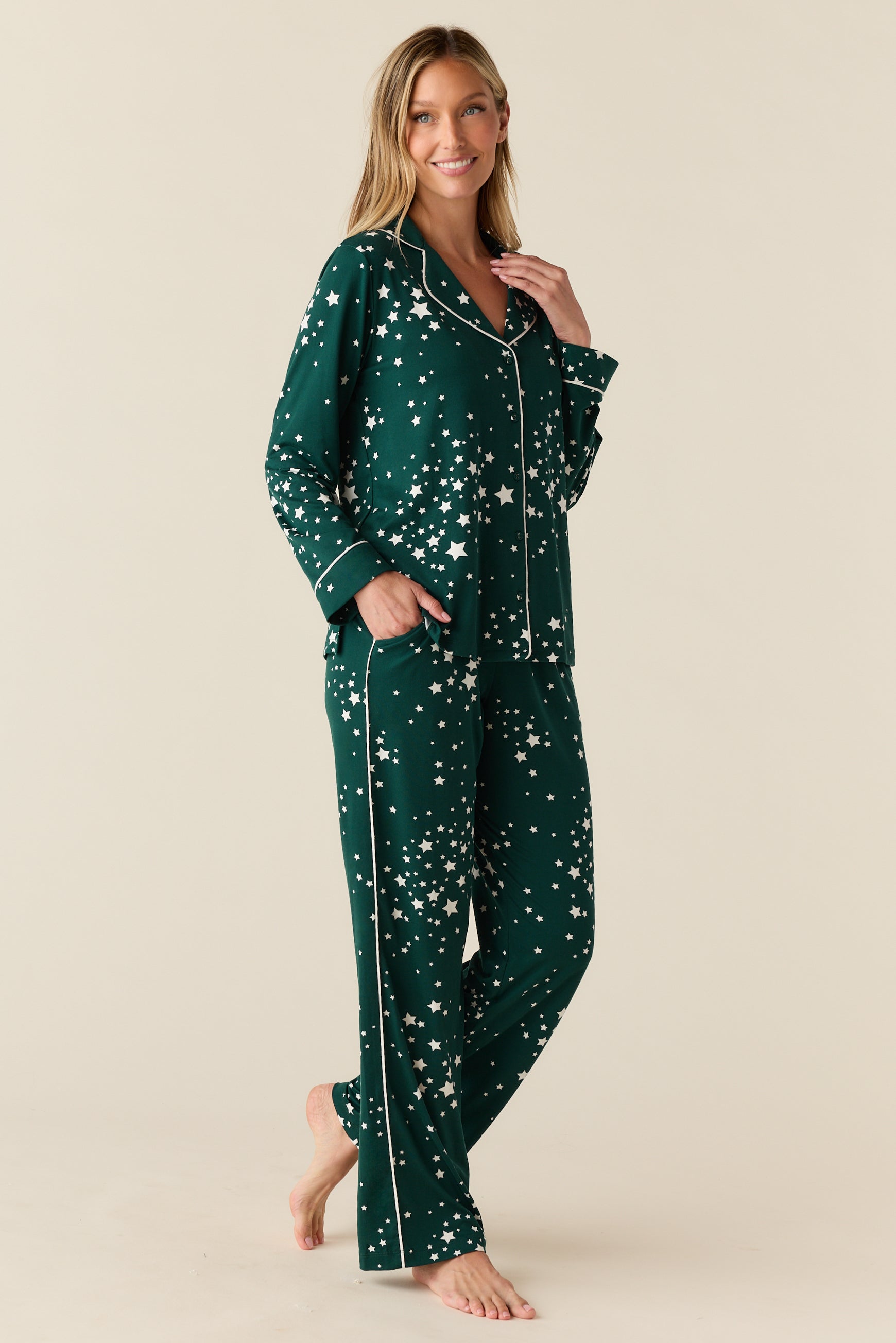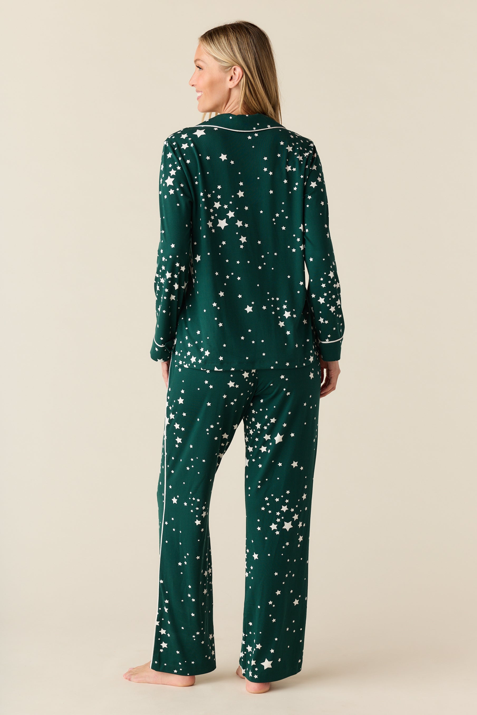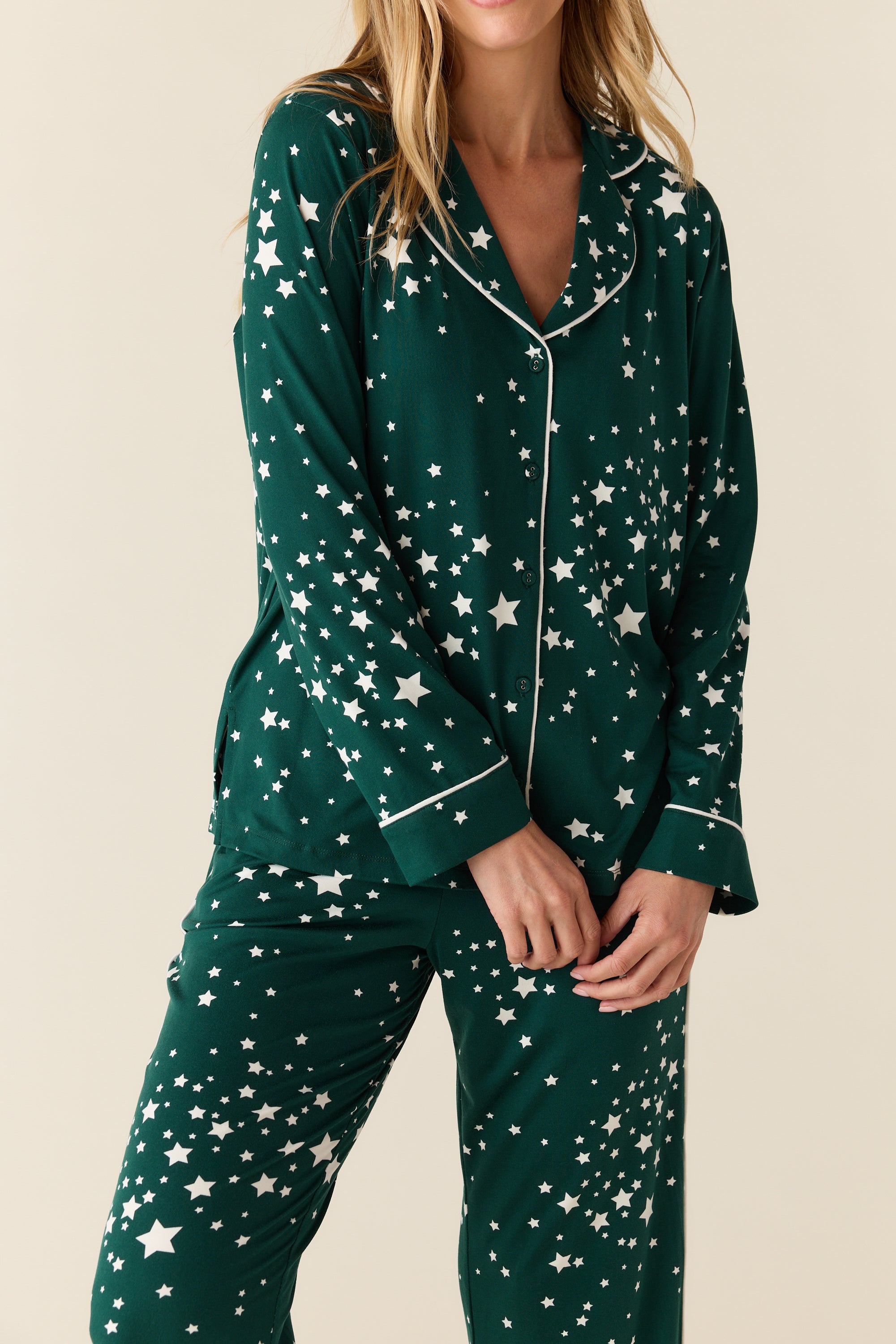With a top that hits right below the hip and a flattering straight leg pant with pockets, it's our most sophisticated pajama yet. We've added covered buttons and contrast piping for that extra special touch.